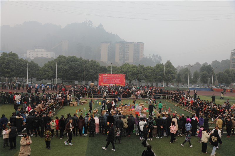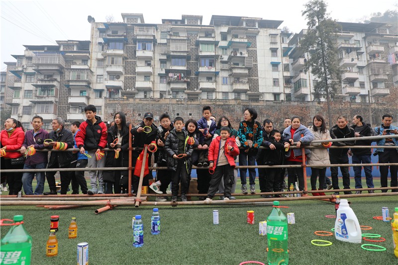“实物套圈”与“贰柒拾”争霸在官斗山足球场同步进行,职工们携妻带子来到矿区“碰运气”。长方形的活动现场围了个里三层外三层,等待“出击”的家属们,在彩圈售卖处排起的长龙绕了两道弯。凝神聚气、预估距离,屏住呼吸、瞄准目标,转动手腕、用力一挥,天空中快速闪过一道道美丽的抛物线。有套中目标丰收喜悦的欢呼,有擦肩而过的叹息与加油。套上三两瓶好酒,回家过个热闹年,无论老少,眼里都是希望。