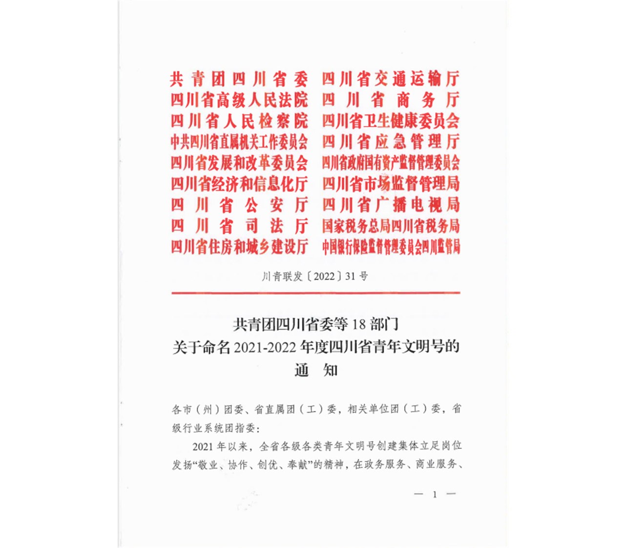 近日,共青团四川省委等18家单位联合发布《关于命名2021-2022年度四川省青年文明号的通知》,川投燃电集团所属宏源气司燃气工程安装公司因“政治素质好、职业道德好、职业技能好、工作作风好、岗位业绩好”,受到团省委肯定,被授予“2021-2022年度四川省青年文明号”称号。