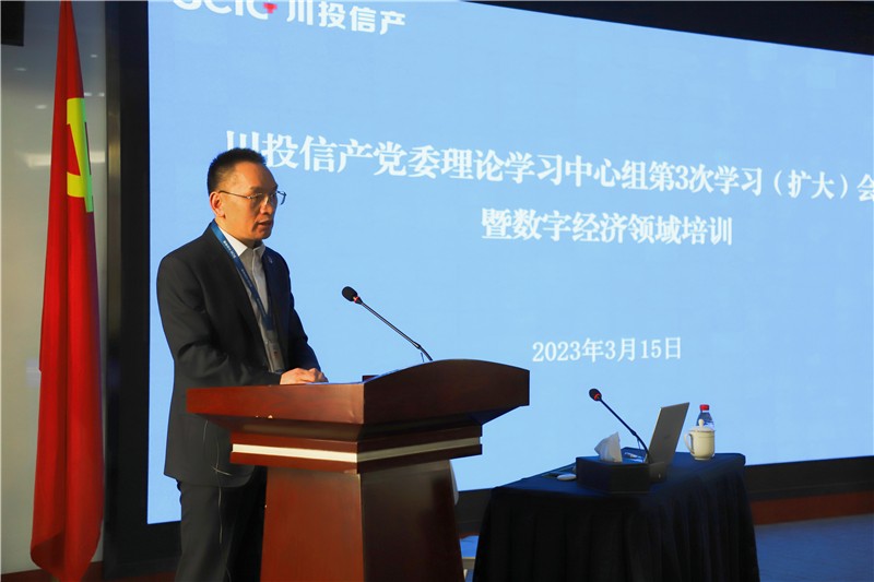 3月15日,川投信产党委组织召开党委理论学习中心组第3次学习(扩大)会议暨数字经济领域培训会,专题进行数字经济专业知识培训。川投信产及所属企业相关干部职工60余人参会。