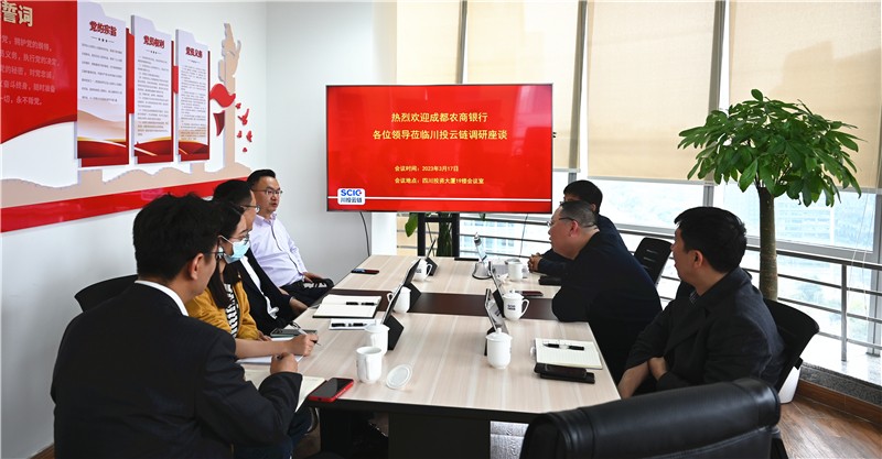 3月17日,成都农村商业银行总行普惠金融部总经理王继东、双流支行行长邝光胜一行赴川投信产所属川投云链调研。