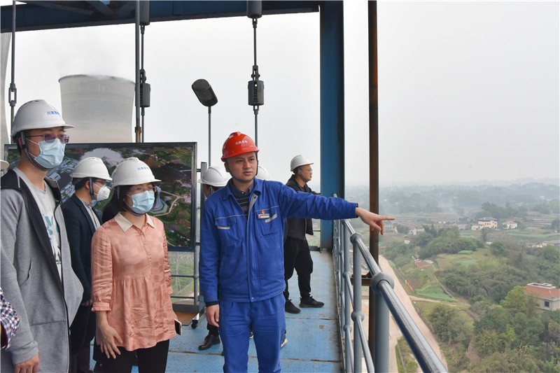 在2号机组锅炉顶部汽包平台,陈嵩向专家组一行介绍了公司2台600MW机组铁路专用线引入及运行情况及川投(泸州)燃气发电项目场地,还远眺储煤场,介绍公司迎峰度夏电煤保供工作等。在集控室,陈嵩向杨晓春一行介绍了公司机组安全生产发电情况。杨晓春首先对公司迎峰度夏、安全生产、电煤保障等工作给与肯定,并指出,此次调研是贯彻落实省委、省政府关于泸州建设港口型国家物流枢纽城市、宜宾——泸州组团建设川南省域经济副中心等部署要求,以及市委、市政府“加快推进泸州江北港区规划建设,把江北港及周边片区探索打造成为‘四化同步推进’发展的示范区”工作安排,川南发电公司作为江北港区范围内的重要能源企业,要主动对接港区规划建设,充分挖掘和发挥自身优势,积极拓宽业务模式,实现互利和共赢发展。