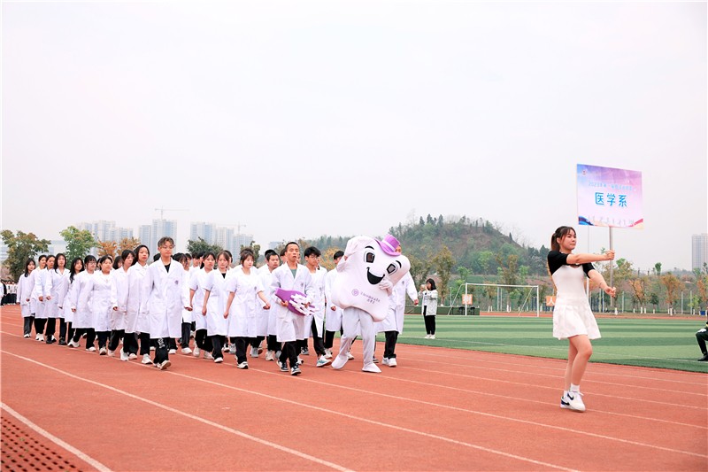 “第31届大运会的圣火即将在成都点燃,希望同学们能发扬更高、更快、更强、更团结的奥林匹克精神,共赴大运之约,彰显青春色彩。”近日,在资阳口腔职业学院首届田径运动会开幕式上,第26届世界大学生夏季运动会体操亚军官文荔来到现场为运动健儿加油助威。作为全国首家以口腔命名的职业院校,此次运动会处处呈现的“口腔元素”也让这场运动会被称为“口腔里的运动会”。