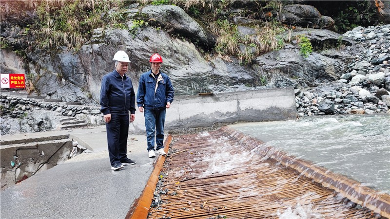 随后,杨洪一行来到回龙沟底格栏栅坝取水口,检查水毁工程修复和生态流量下泄情况。告诫值班人员加强巡视检查,禁止游客进入生产场所,严防人身伤害。
