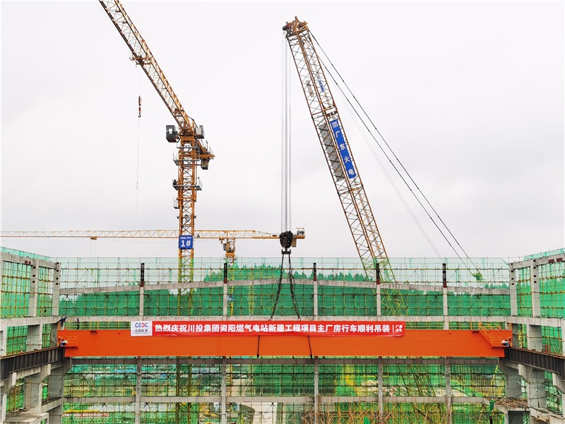 5月9日11时08分,随着现场指挥一声令下,一台650T履带吊起重机伸出70余米长的主臂,资阳燃气电站项目主厂房行车在其作用下缓缓上升,逐渐到达主厂房指定位置,标志着资阳燃气电站项目全面进入主厂房设备安装阶段。