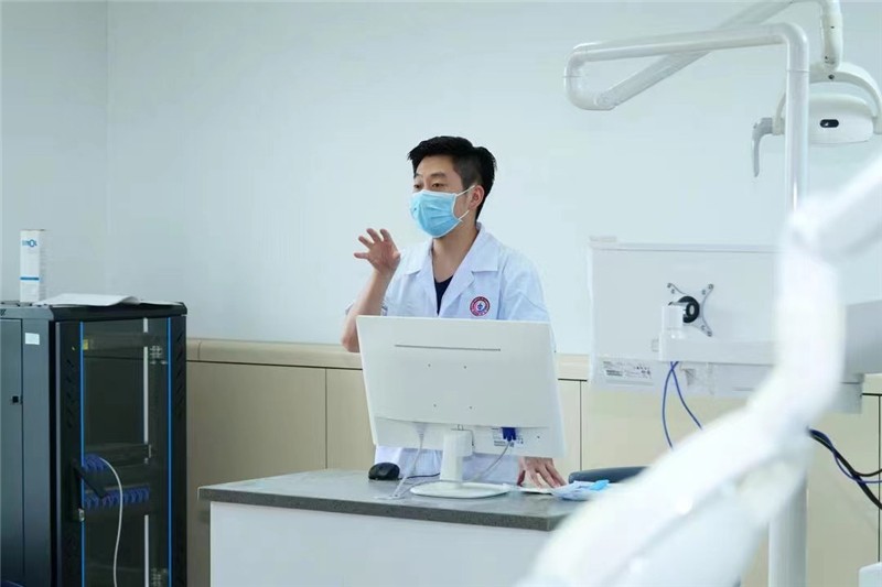 在实践环节,蒋礼医生利用3D口内扫描仪与同学们进行了互动体验,并在虚拟仿真口腔技能训练机上实践操作,用最新的教育教学手段,让同学们对口腔医学有了全新的认识。