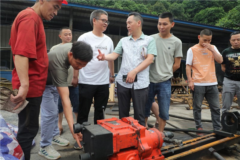 培训由煤矿核算组牵头组织,50余名掘进岗位职工和矿办科室掘进技术管理人员分5批在两个会议室和工业广场接受理论和实操循环培训。雷管起爆控制器由生产技术科科长潘刚主讲,梳理控制器收发与领用、井下使用注意事项、控制器的保养与维修、性能参数与校验等内容,以提升领取、使用和日常维护控制器的岗位人员标准操作意识,规范工作流程。通风科技术员杨轩从钻机型号及钻机架构,钻孔方位角、倾角的确定,防喷装置的作用及安装要求,钻孔封孔工艺要求等方面讲解了钻机实用操作知识,指出注意事项。培训外请了重庆大学的邹德均博士来矿传经送宝,从煤矿巷道锚杆支护支护演化历程,与锚杆支护有关的《规范》,煤矿巷道锚杆支护理论的缺陷,煤矿巷道锚杆支护、现场施工和锚杆支护监测存在的问题及解决办法等方面解答职工疑问。