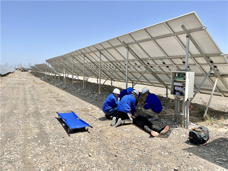 安全生产月期间,公司所属酒泉光伏电站开展了模拟运维人员在巡检过程中触电的应急演练,石嘴山光伏电站开展了模拟突发火情消防应急演练,显著提升了电站防灾避险和自救互救的能力,筑牢安全生产的防线,确保电站的有序生产。