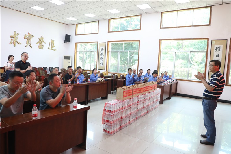 在嘉阳集团底楼会议室,郑祝彬主任向嘉阳煤矿、机电制造维修分公司、综合服务公司、物资供销公司等二级生产单位高温战线的20名优秀职工和生产骨干致敬,对他们在高温酷暑下坚守岗位、认真履职尽责、确保安全生产道一声辛苦了,他叮嘱大家一定要注意防暑降温、合理安排作息时间,切实做好防暑降温工作。随后,郑祝彬为大家送上菊花、金银花、茶叶等防暑慰问品。党委副书记、工会主席谢建国代表企业感谢市总工会长期以来对企业的支持和矿山职工的关爱。面对酷暑天气,嘉阳集团工会将持续引导企业各基层工会结合实际开展好“送清凉”活动,切实保障广大职工的生命安全和身体健康。