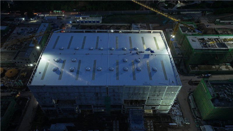 2023年8月28日11时38分,资阳燃气电站主厂房屋面全面止水,为后续机岛设备安装提供有利条件。