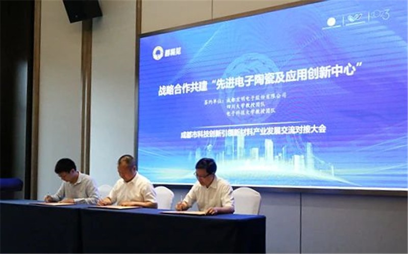 为贯彻落实中共成都市委《关于坚持科技创新引领加快建设现代化产业体系的决定》精神,本次会议重点围绕打造“链主企业+公共平台+产业基金+领军人才+中介机构”产业生态体系,以“科技引领 产业创新 知产赋能”为主题开展多场交流合作。会上,宏明电子同四川大学、电子科技大学团队签署《战略合作共建“先进电子陶瓷及应用创新中心”协议》。成都市经信局新材料产业处长路远向宏明电子总经理刘尊述进行首任轮值理事长单位授牌,随后,刘尊述向四川大学李光宪教授颁授名誉理事长聘书。