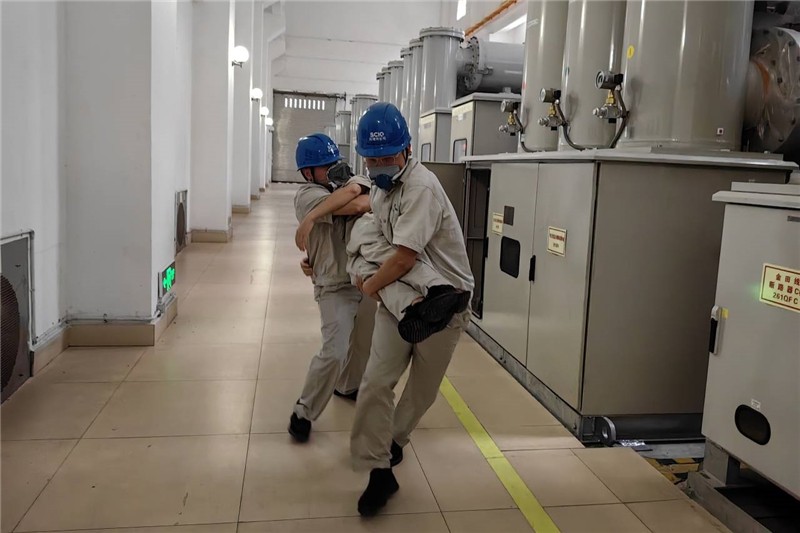 为有效提高人员应急处置能力,筑牢安全生产屏障,9月18日,田湾河公司在大发电站GIS室组织开展了SF6气体泄漏现场应急处置方案的实战演练。