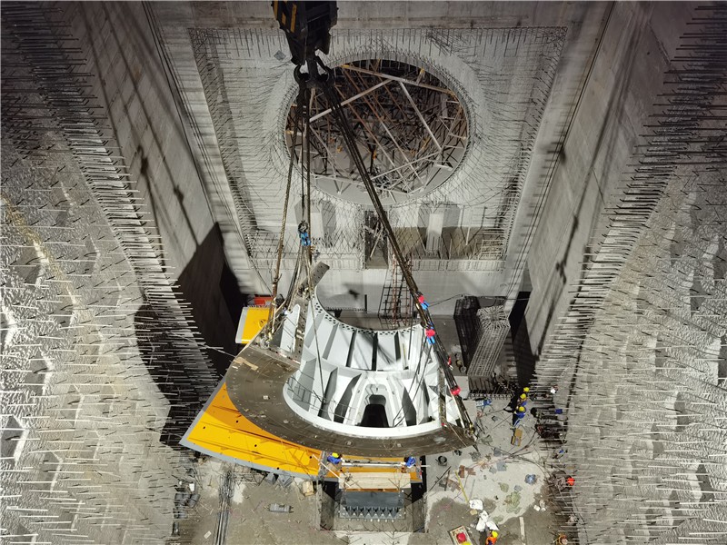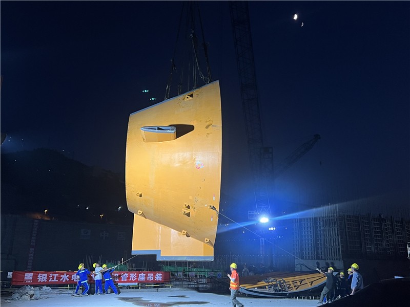 10月20日履带吊车试吊验收及下固定导叶顺利吊装完成后,从20日16点开始至21日20:00结束,历经运输、翻身及吊装三个阶段长达18个小时工作,管形座最重件第一瓣内壳在公司领导的现场指导下稳稳落至安装位置,后续公司将组织参建单位一鼓作气将首台机组管形座剩余内壳、外壳、前锥体及固定导叶等悉数吊装到位,力争年底完成安装工作,为实现2025年一季度首台机组投产发电目标打下坚实基础。