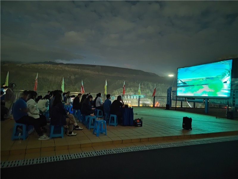 活动下午,银江青年志愿者们早早来到大党建宣传阵地信仰之光广场,洗好水果,擦净护栏,摆好桌椅,协助工作人员搭好幕布。随着夜幕降临,水电五局、水电七局、广东源天等项目部的工友们有序来到广场,大家褪去一天的疲惫,坐在和煦的晚风中,一边享用水果,一边观看精彩的电影,荧幕的亮光映射到每个人的笑脸上。大家精选了与工程建设息息相关的大型纪录片《厉害了!我的国》,这部影片展现了中国近几年在科技发展、经济建设、乡村扶贫、生态文明等多个方面取得的非凡成就,以“大主题与小切口”、“高大上与接地气”有机结合的方式,生动形象地带大家领略了人类历史上最大的射电望远镜FAST、全球最大的海上钻井平台“蓝鲸2号”、“墨子号”量子通信卫星以及中国桥、中国路、中国车、中国港等超级工程,体裁多样、视野开阔,让观看的工友们叹为观止,赞叹不已。
