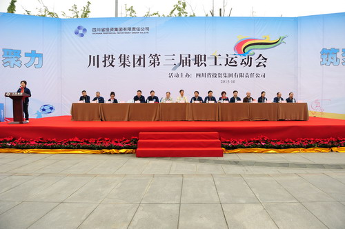 金秋十月,丹桂飘香,洋溢着川投员工的火热激情;集团上下,生机勃勃,涌动着发展改革的滚滚热潮!2015年10月29日上午,红旗招展,彩絮飘扬,时隔五年后,川投集团第三届职工运动会在四川国际网球中心开幕。省国资委党委委员、副主任李继郁,省总工会副巡视员、财贸轻化纺工会主席邓俊,省国资委群工处处长舒仕能等领导应邀出席了开幕式,集团公司领导班子成员、员工代表、全体运动员、裁判员共600余人参加了开幕式,开幕式由集团公司副总经理穆婷云主持。