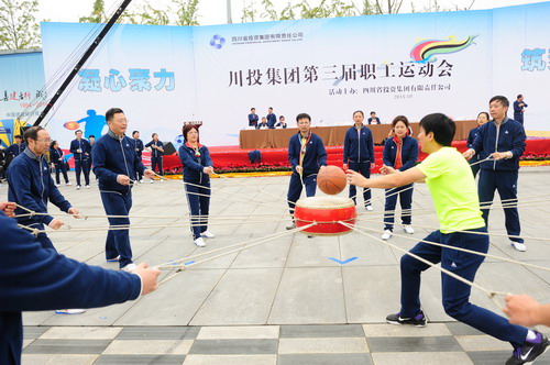 10月29日,紧随激动人心的开幕式后,川投集团第三届职工运动会趣味比赛正式开始。比赛共分龙行天下、雷霆战鼓、运转乾坤和奔跑吧足球四个项目。项目的设计重点突出“快乐”的特点,务求让参赛者“玩”得过瘾,观众看得开心。同时,每一个比赛项目都十分考验运动员的动手动脑能力和团结协作精神,这不但是智慧和体力的角逐,还是团结和协作的比拼。