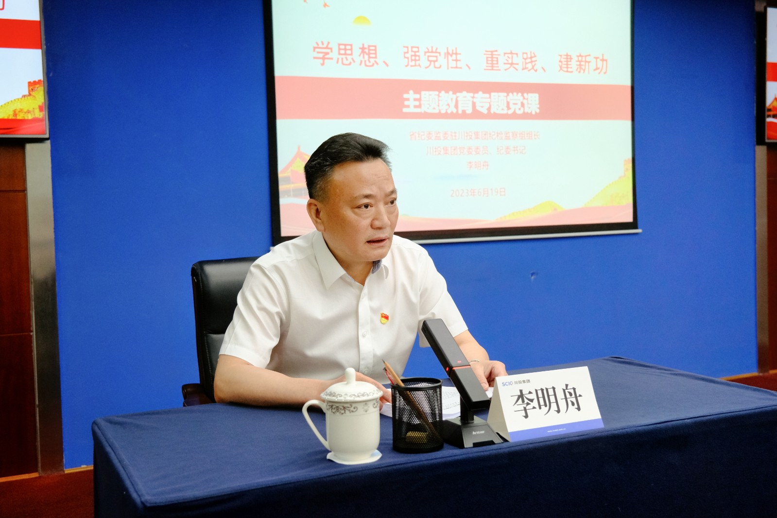 6月19日下午,省纪委监委驻川投集团纪检监察组组长、川投集团党委委员、纪委书记李明舟以《深入学习贯彻习近平新时代中国特色社会主义思想主题教育 推动川投纪检监察工作实现高质量发展》为题,向集团纪检监察系统党员干部讲授专题党课。