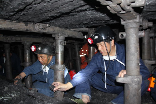 5月15日下午,在嘉阳集团公司总经理刘期虎,副总经理、安监处处长杜勤,嘉阳煤矿矿长王维洪的陪同下,巡视组及川投领导到井下采煤一线视察。换过工作服、佩带好自救器、矿灯,巡视组乘坐人车辅助器下到矿井,经+215水平人行副巷坐人车到达24162工作面。在24162工作面,总经理刘期虎向省委第二巡视组副组长唐才东,川投集团党委副书记、纪委书记董建良等领导介绍了嘉阳煤矿煤炭赋存情况、开采方式、以及原煤产量情况。省委第二巡视组副组长唐才东指出,嘉阳在生产条件极其恶劣的情况下进行薄煤层开采,为国家能源建设、为四川的发展作出了很大贡献,值得敬佩。同时他高度肯定了嘉阳薄煤层开采管理的先进经验。