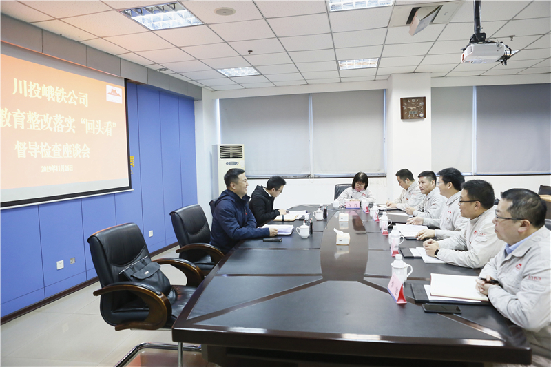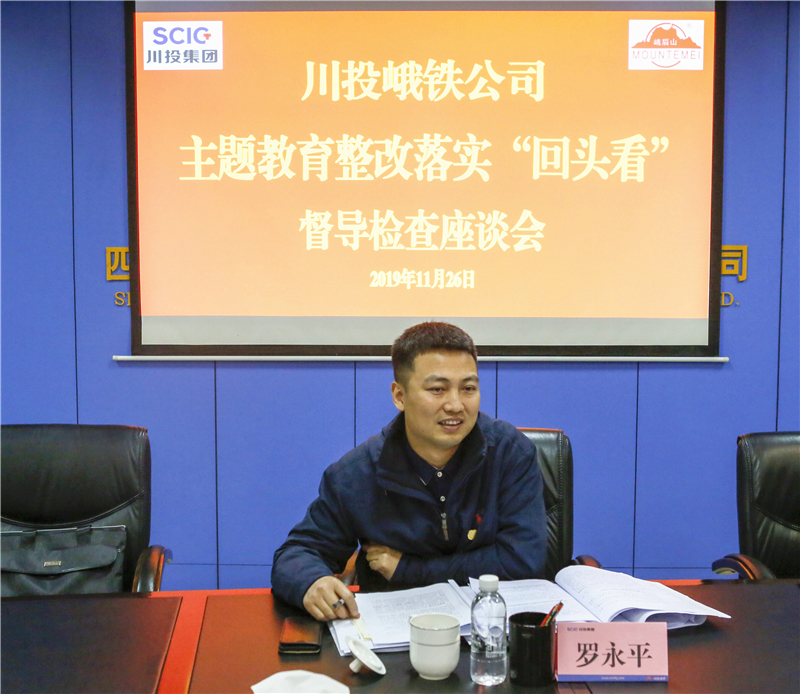根据集团党委工作安排,11月26日,集团公司党委委员、副总经理罗永平一行到川投峨铁公司,督导检查“不忘初心、牢记使命”主题教育整改落实“回头看”工作。川投峨铁公司党委书记、董事长、总经理唐华应以及公司领导班子成员、党政办公室相关负责人参加座谈。