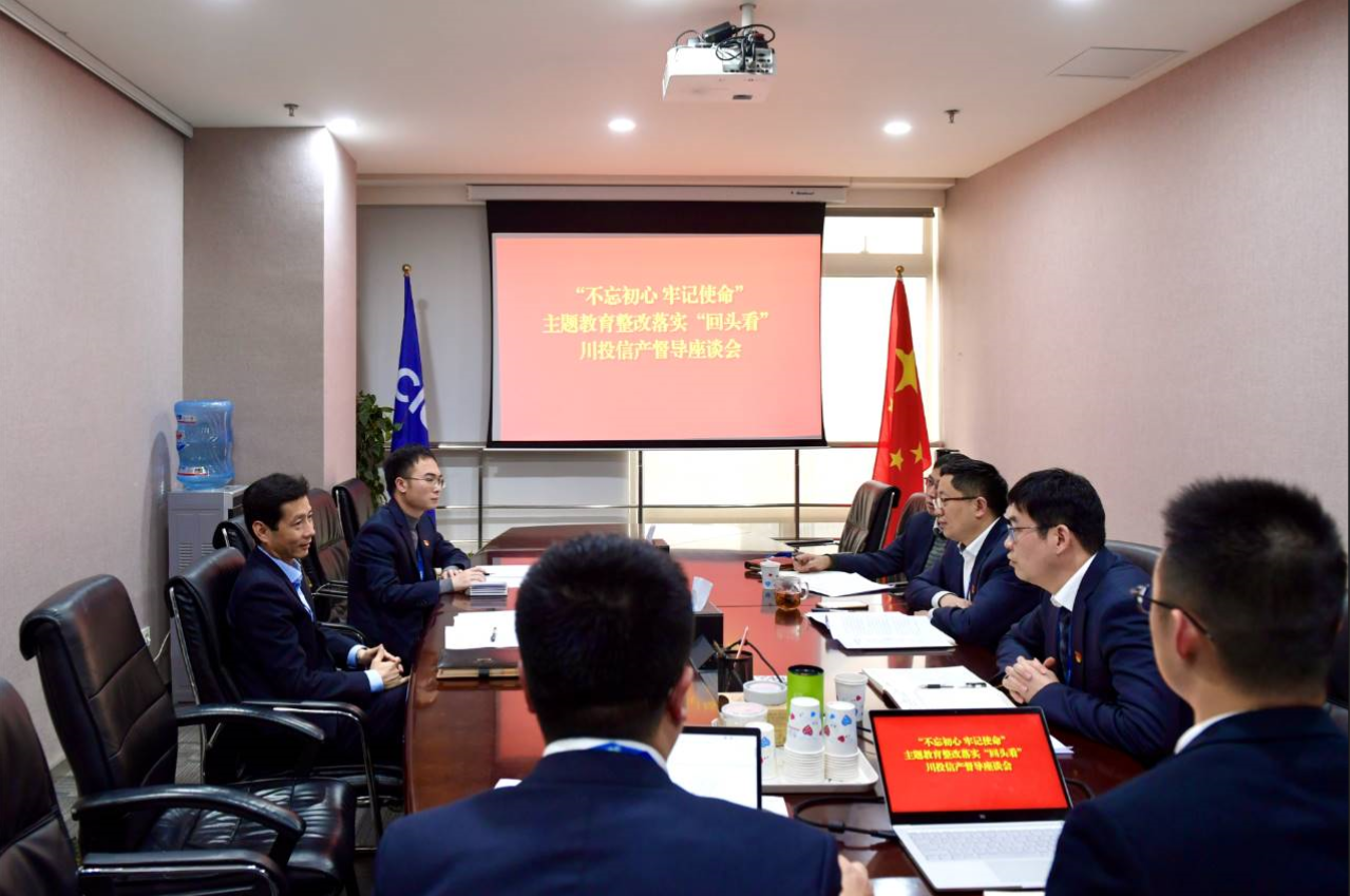 张昊副总经理一行听取了川投信产公司党支部书记、董事长、总经理王波关于川投信产“不忘初心、牢记使命”主题教育整改落实情况及专项整治工作的汇报。