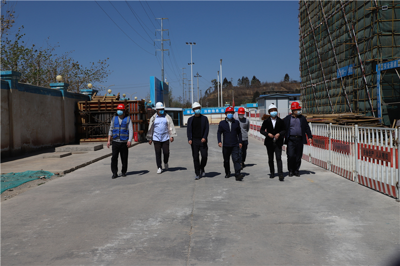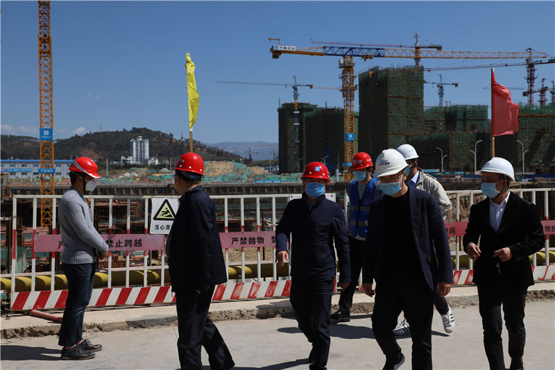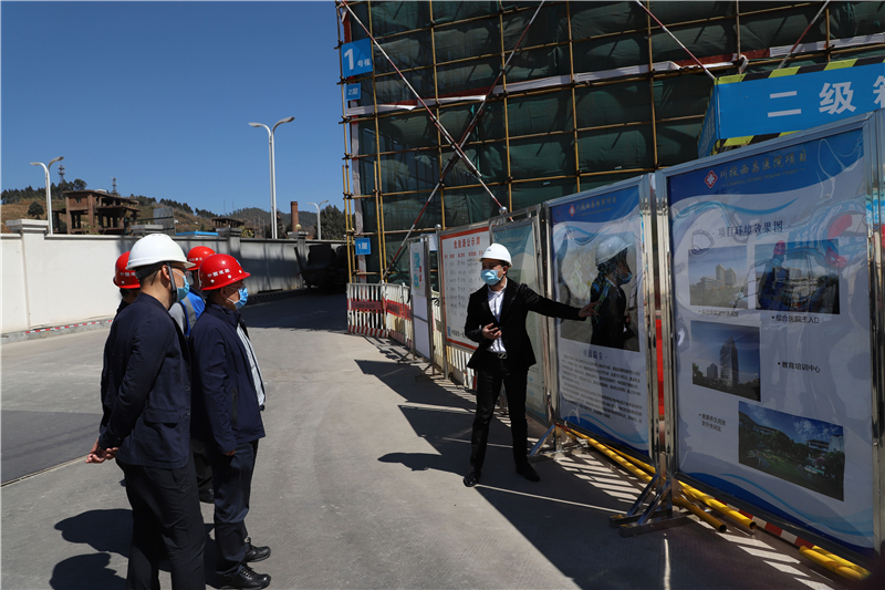 3月7日,省国资委党委委员、副主任沈汝源一行到川投西昌医院项目检查指导安全环保工作,并就做好疫情防控和企业复工复产等工作进行指导。川投西昌大健康公司副总经理李刚、龚坚及各参建单位相关人员陪同调研。