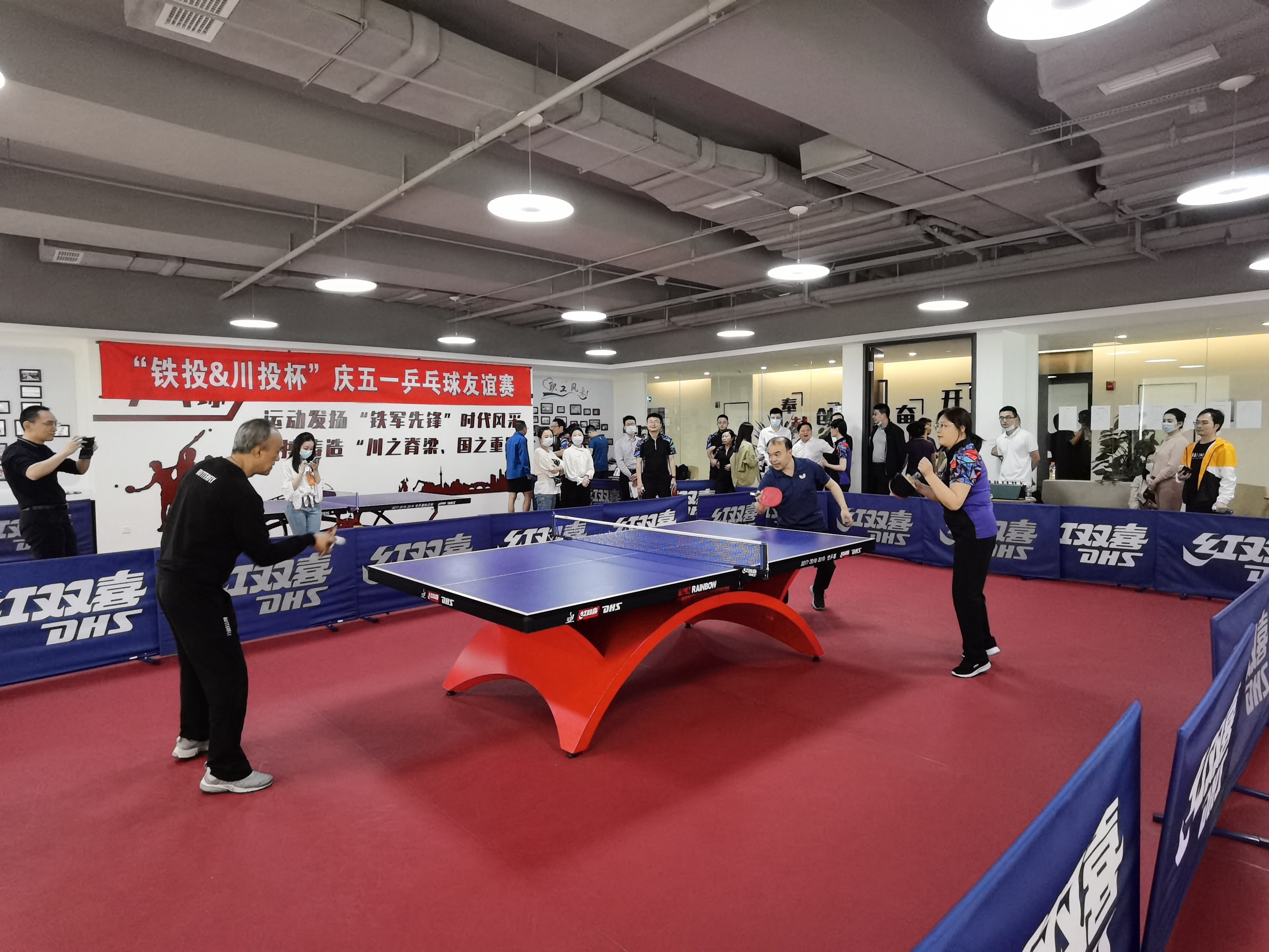 在夺取抗击新冠肺炎疫情复工复产全面胜利的关键阶段和“五一国际劳动节”即将来临之际,为加强兄弟企业文化交流,丰富干部员工业余生活,4月29日,川投集团机关工会、铁投集团机关工会联合举办“川投&铁投杯”庆五一乒乓球友谊赛。川投集团党委委员、职工董事、工会主席率队出征,副总经理,党委委员、纪委书记田雨晴,党委委员、副总经理罗永平出席活动。