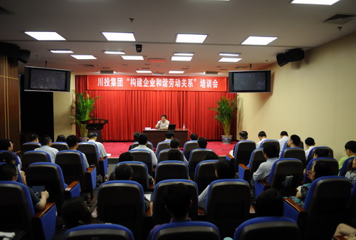 为深入开展“实现伟大中国梦、建设美丽繁荣和谐四川”主题教育活动,持续推动企业改革发展,积极创建“建设发展快、质量优、和谐美的‘三型企业’”, 2013年6月14日上午,集团公司组织召开了“构建企业和谐劳动关系”专题培训会,会议由集团公司总经济师薛东兵主持,总经理助理兼人力资源部经理石平出席会议,集团公司人力资源部、党群部人员及集团公司所属企业分管人事、工会的领导,人力资源部、工会负责人及相关工作人员参会,会议特别邀请了四川省人力资源和社会保障厅劳动关系处陈泉处长为大家授课。