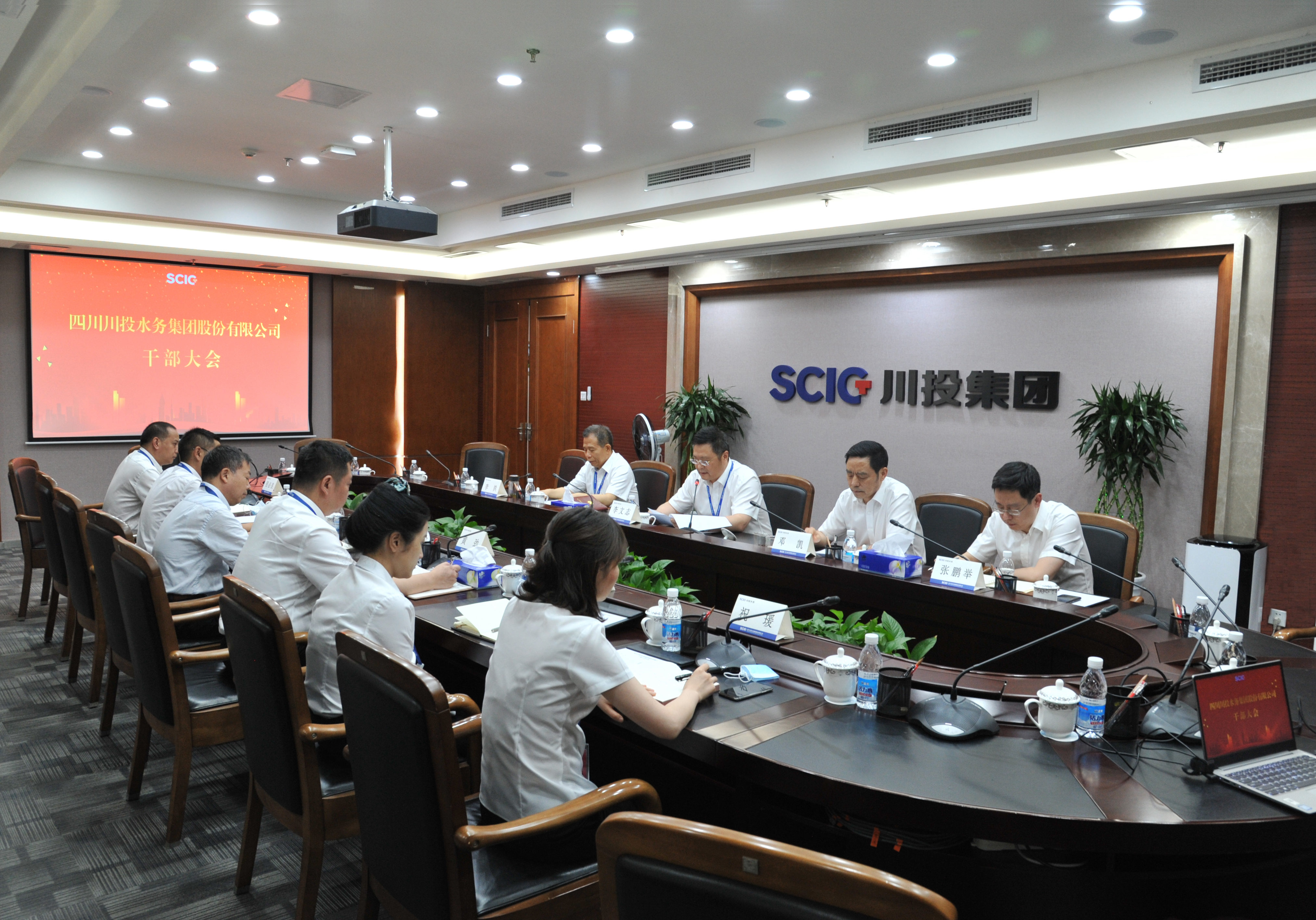 6月5日下午,川投水务干部大会在川投大厦1508会议室召开。川投集团党委副书记、副董事长、总经理李文志,党委副书记、董事邓凯,董事、副总经理李洪,人力资源部部长张鹏举出席会议。会议由川投集团党委副书记、董事邓凯主持。
