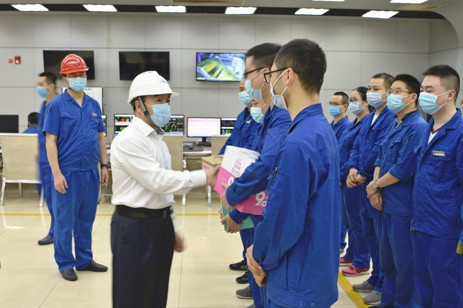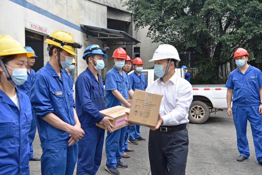 田雨晴组长首先到川南发电公司集控室和燃煤检验现场看望奋战在生产一线的工作人员,慰问在烈日下挥汗如雨,默默工作的现场员工,为大家发放防暑降温的清凉用品,嘱托大家在夏季工作过程中一定要注意防暑,代表集团公司感谢大家在酷暑难耐的气温下依然坚守岗位、兢业奋斗,及时把集团的关怀和情意传达至每一名员工。现场员工一致表示:不管气候多么恶劣,一定会一如既往地坚守岗位,一如既往做好各项工作,不忘初心,敬业奉献,撸起袖子加油干,为顺利完成企业年度生产经营目标再立新功。