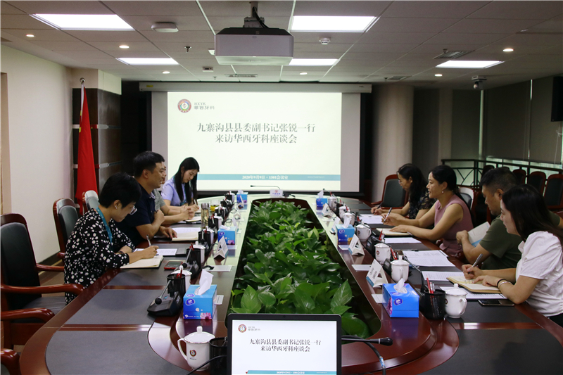 张锐一行重点介绍了九寨沟县当前口腔医疗服务现状和下一步工作计划,他表示,九寨沟县是世界闻名的旅游强县,流动人口众多,口腔医疗在当地呈现巨大的市场空间和发展前景,希望与华西牙科建立长期合作关系,实现互利共赢、共同发展。