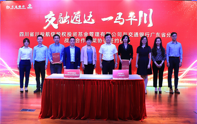 9月23日,川投航信与交通银行股份有限公司广东省分行(以下简称交行广东省分行)在广州市交通银行大厦签署战略合作框架协议。集团公司总会计师、川投航信董事长郑世红,交行广东省分行党委委员、副行长黄海出席签约仪式并致辞。
