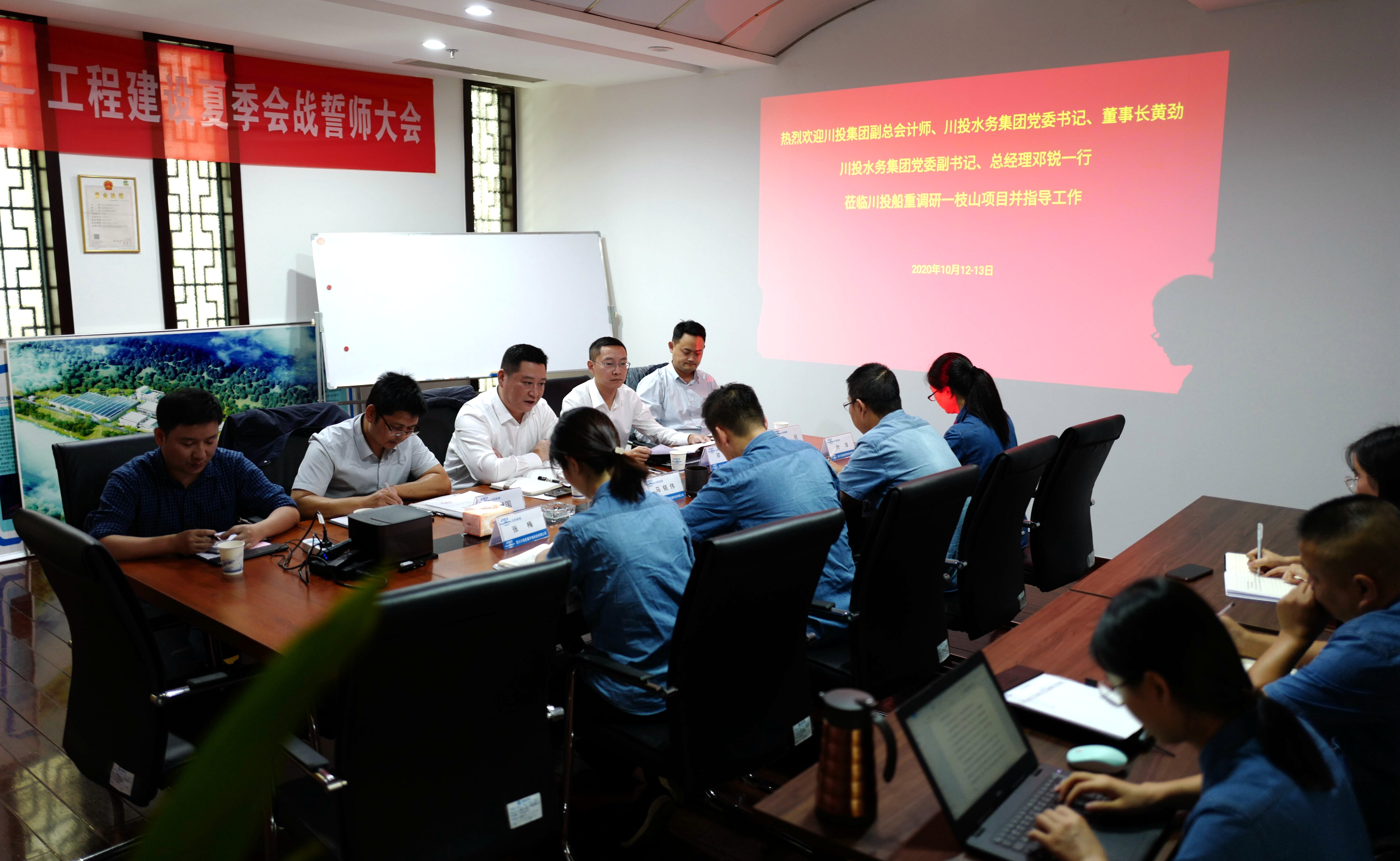 10月12至13日,集团公司副总会计师、资金财务部部长,川投水务党委书记、董事长黄劲出席四川川投船重环境科技有限公司(以下简称川投船重)干部大会,考察调研了一枝山工业污水处理厂,并与米易县政府主要领导进行会谈。