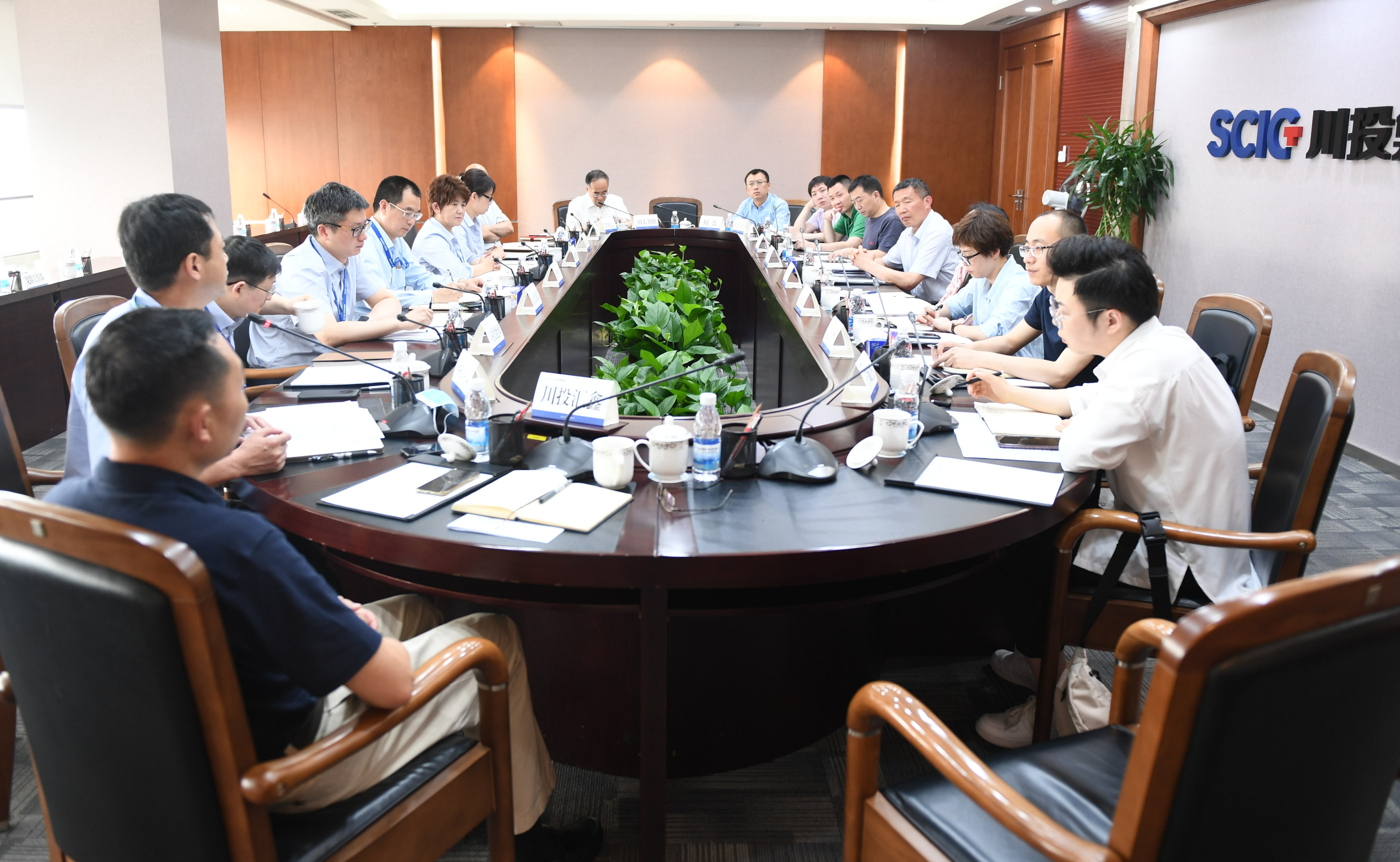 5月13日,省国资委巡视员韩宝顺一行到川投集团专题调研深化混合所有制改革工作,座谈听取改革的意见建议。集团公司董事、副总经理郑世红主持座谈交流。