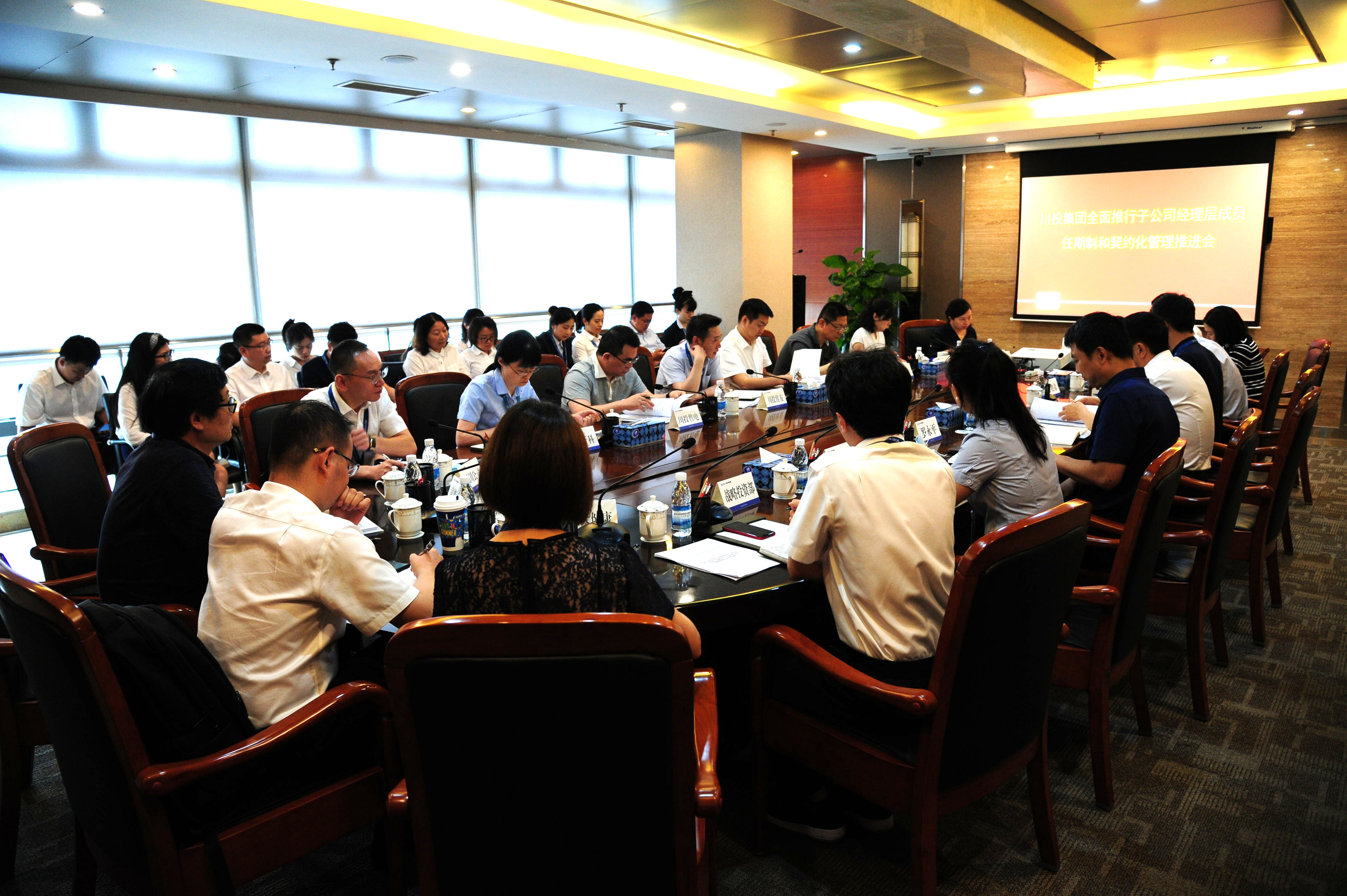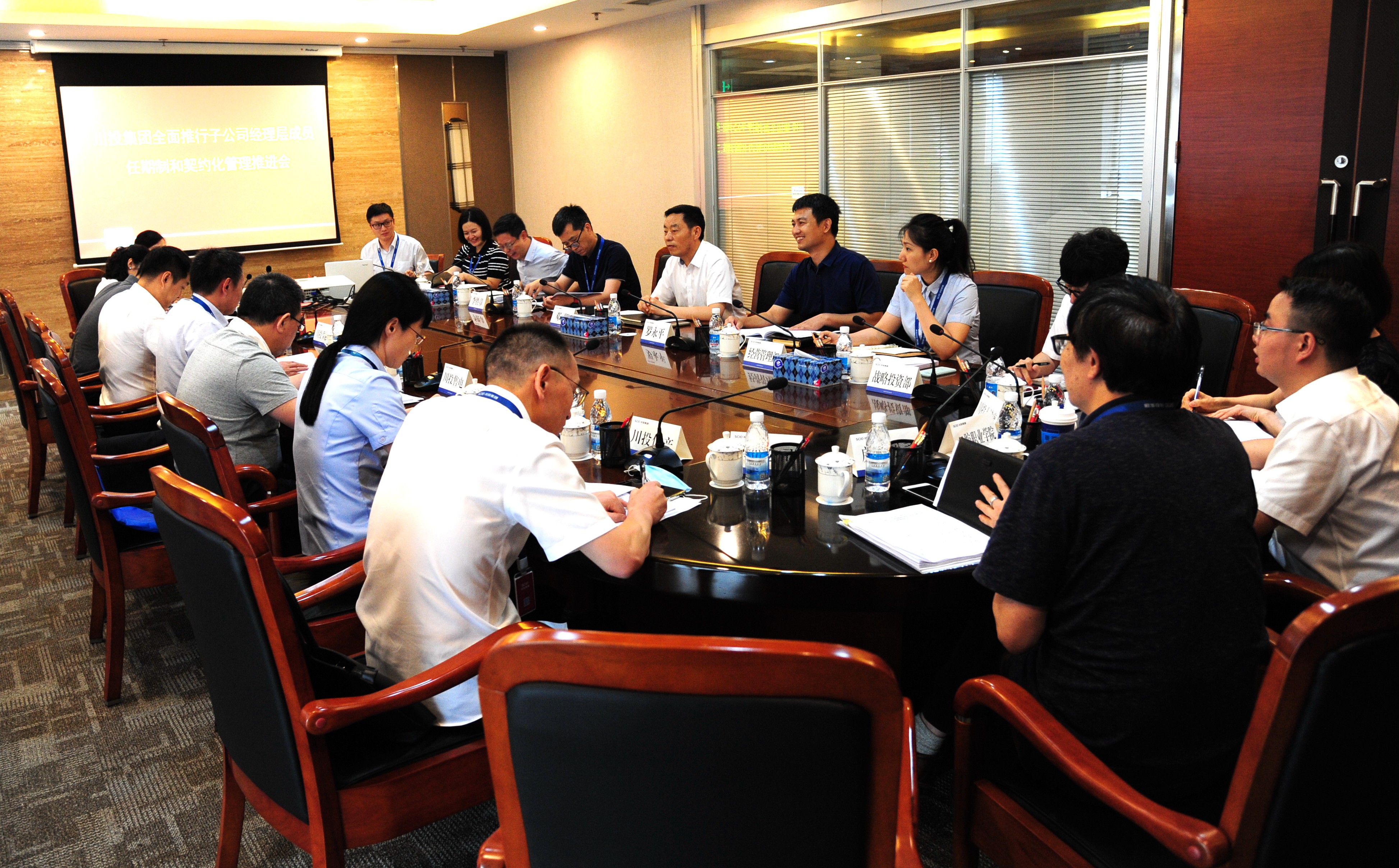 6月24日,川投集团召开所属公司全面推行经理层成员任期制和契约化管理工作推进会。集团公司党委副书记、董事邓凯,党委委员、副总经理罗永平,总经理助理、经营管理部部长李胜章出席会议。集团公司人力资源部部长张鹏举主持会议。