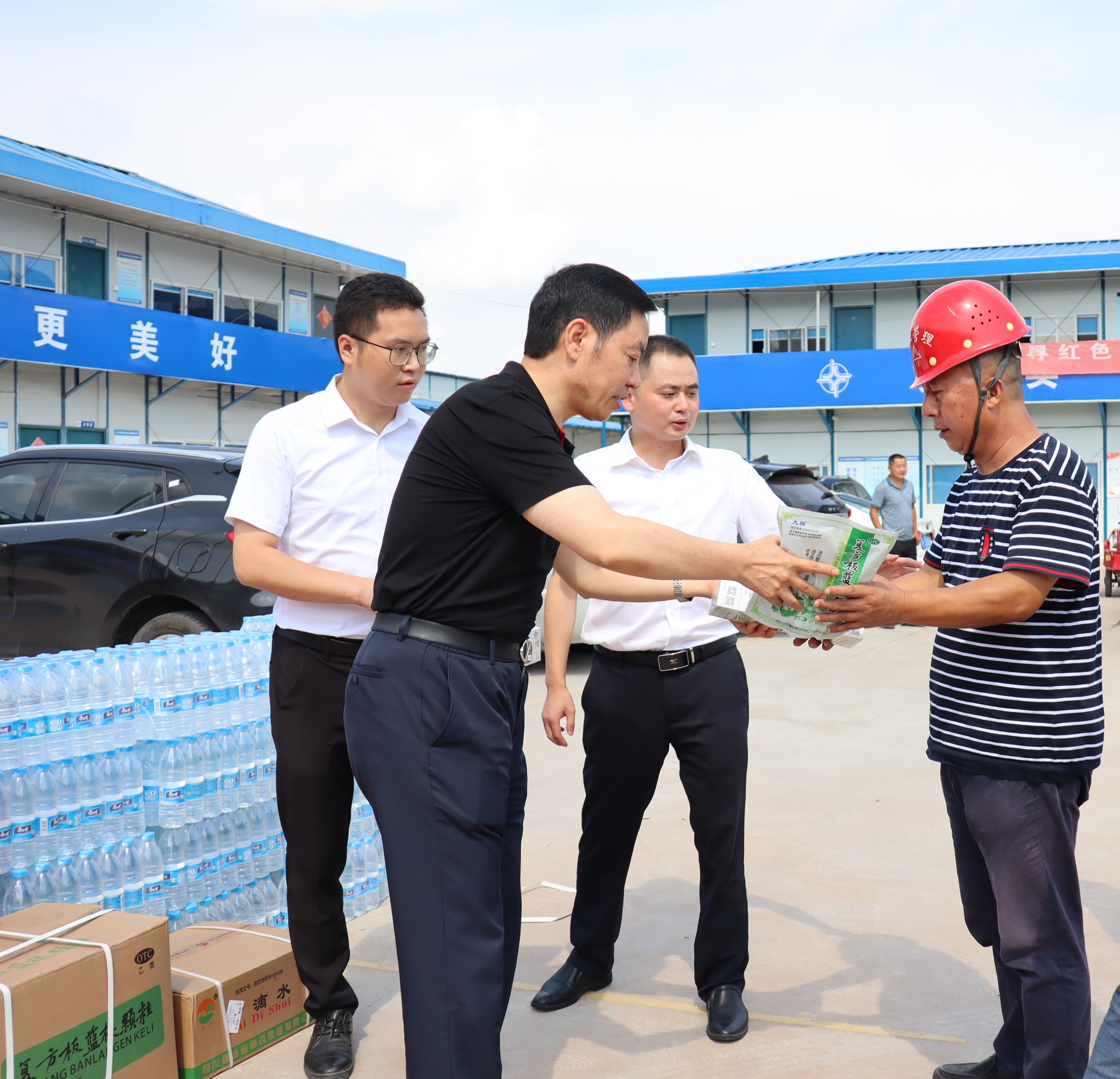 邓凯一行深入中国牙谷项目施工现场和资阳口腔职业学院,代表集团公司对在高温下坚守一线的施工人员、教职员工表示了亲切的关怀和慰问,将消暑物资送到大家手中,提醒大家做好防暑降温措施,在保障安全的前提下开展施工管理和学院运行管理工作。