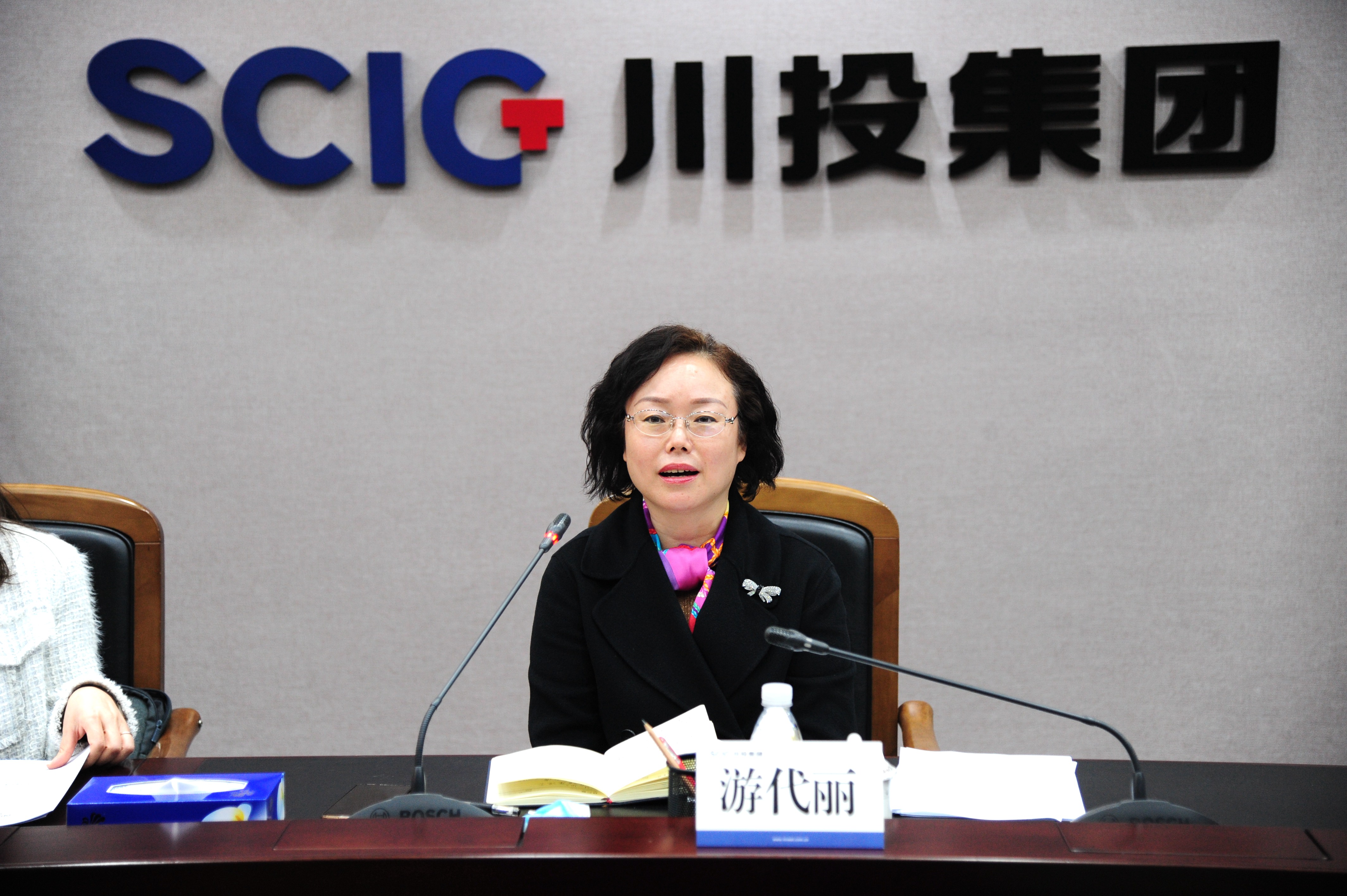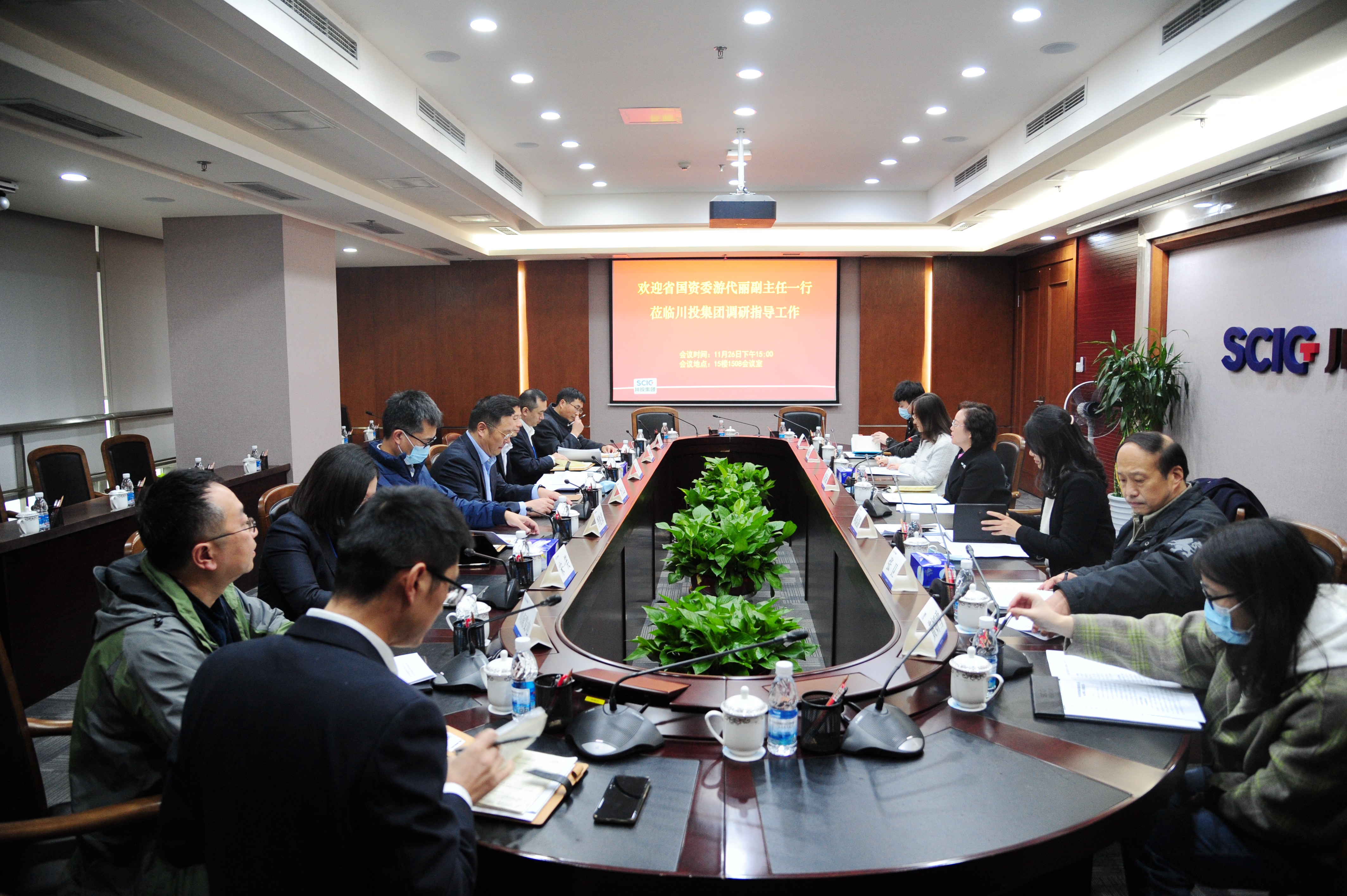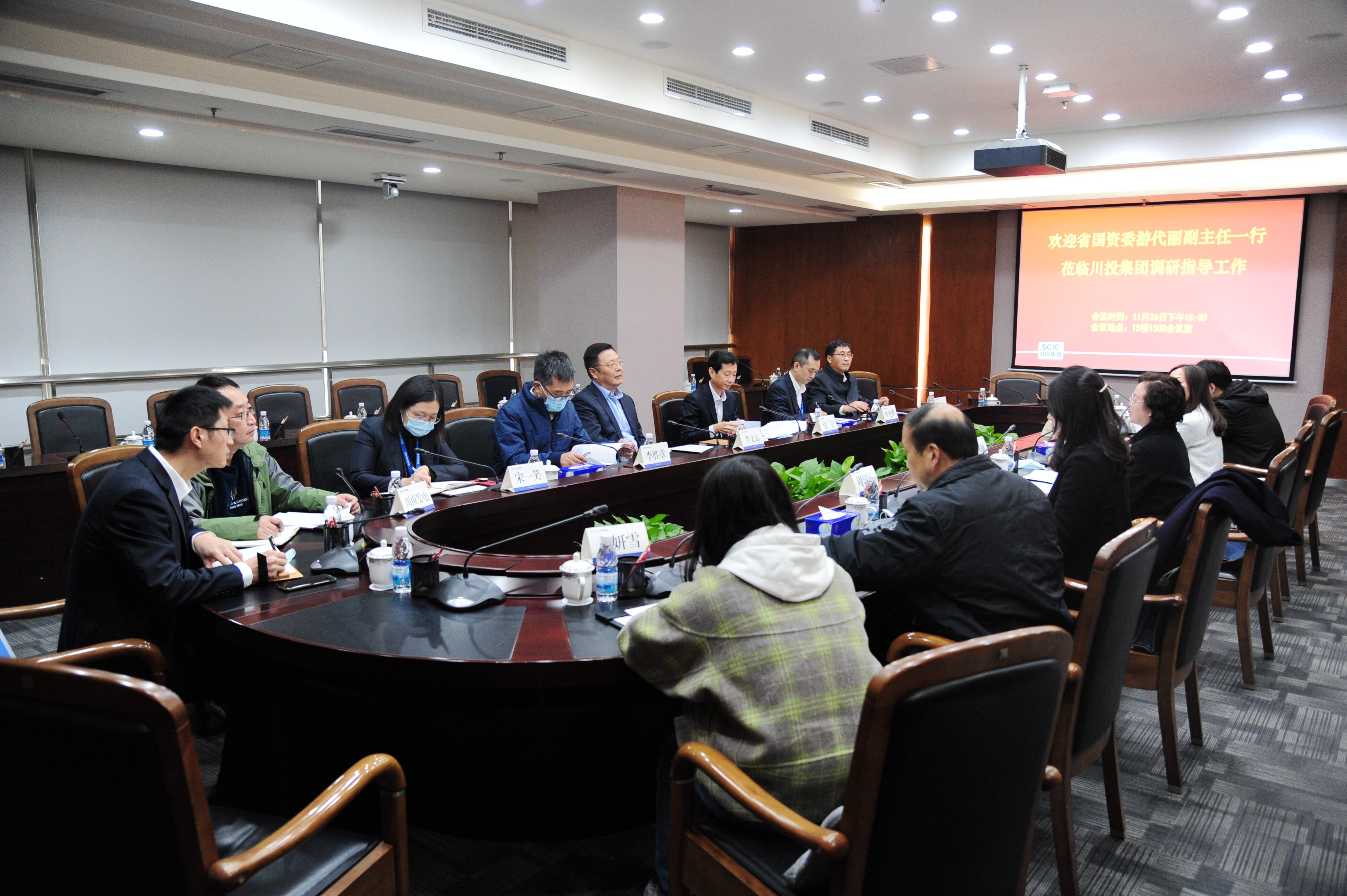 11月26日,省国资委党委委员、副主任游代丽带队赴川投集团调研指导保电工作。集团公司党委副书记、副董事长、总经理李文志,副总经理张昊参加座谈。