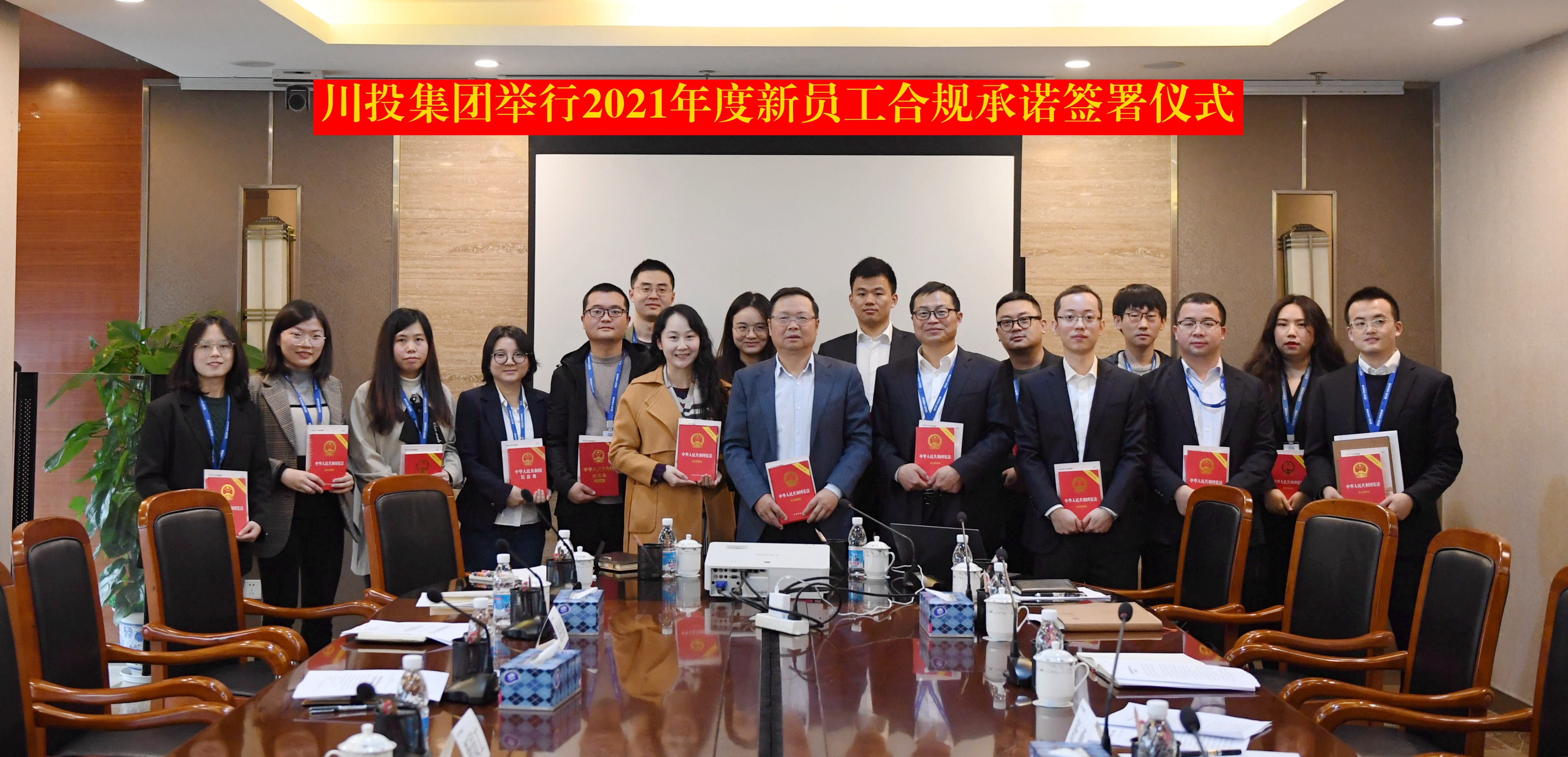 会议现场舒勇向新员工发放了《宪法》《民法典》《川投集团法律风险防范案例选编 》等法治书籍,集团公司总法律顾问、法律事务部部长杨帆领学了《川投集团诚信合规手册》,新员工现场签署了合规承诺书。