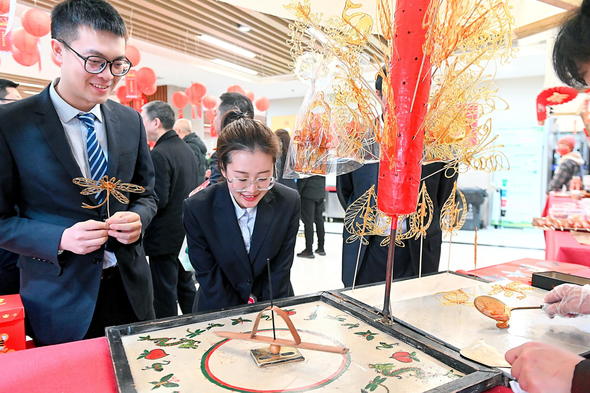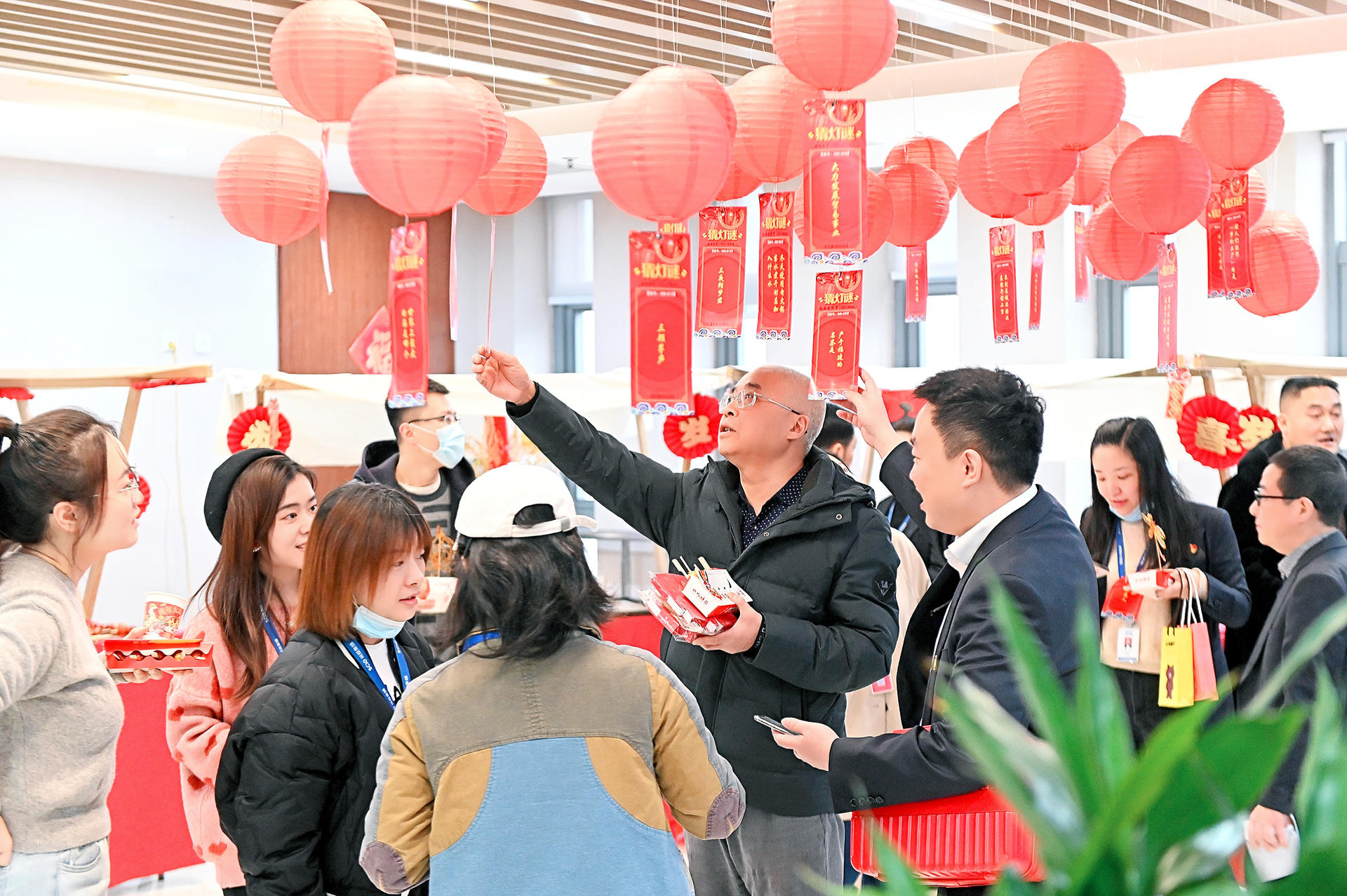 本次活动分为新春游园会和掼蛋趣味赛上下半场,上午的新春游园会设置有“美食集市区”“非遗体验区”“虎联拿福区”“文韵互动区”“武韵挑战区”等五大主题,剪窗花、写春联、猜灯谜、飞花令、品传统美食、玩趣味游戏,年味十足,喜气洋洋,活动现场人头攒动,欢声笑语洋溢在整个活动现场,每个人都玩得不亦乐乎。