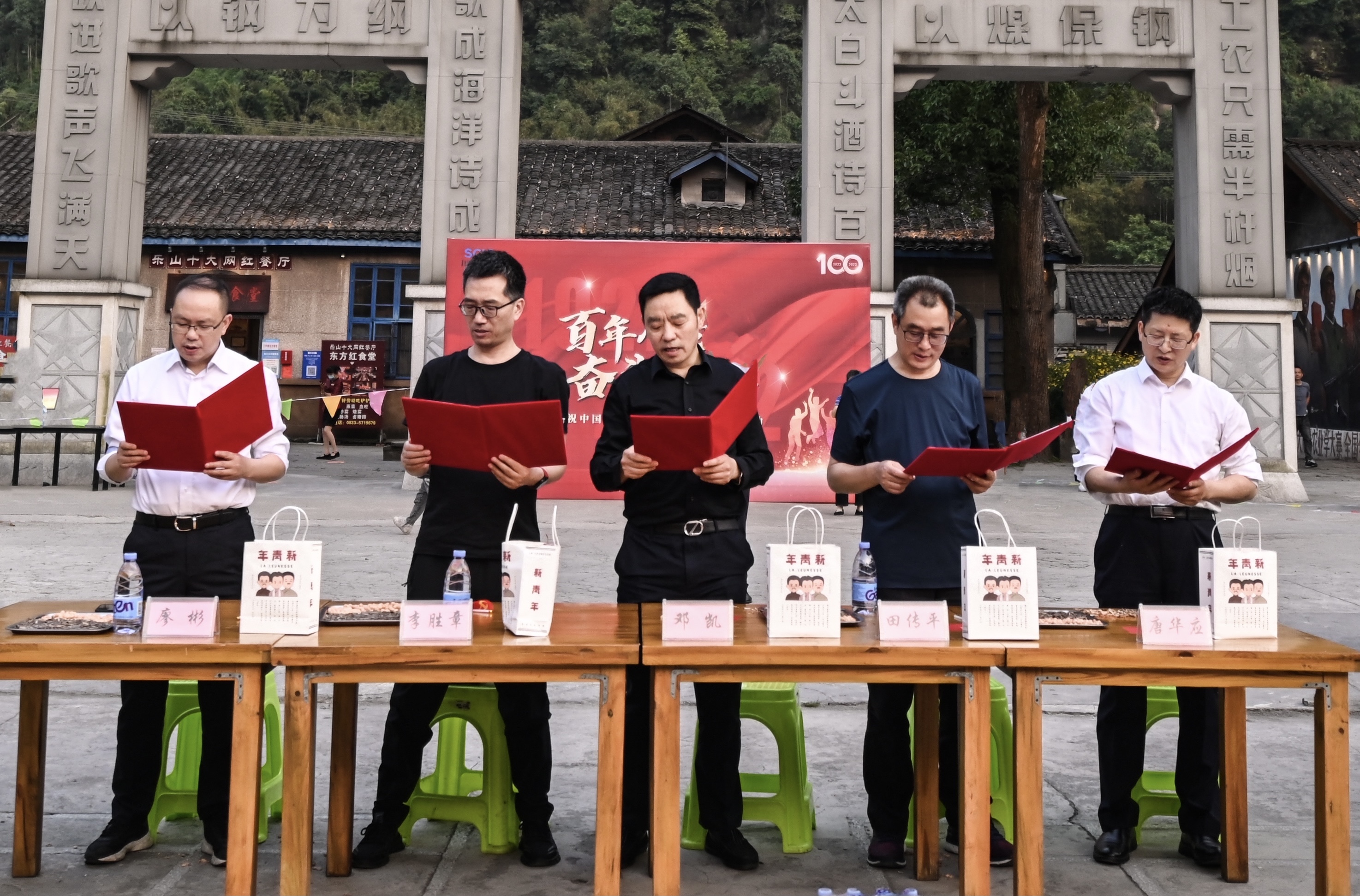活动现场,邓凯分别向“嘉阳煤矿团总支部”和“川投峨旅讲解服务团队”授予“青年突击队”和“青年文明号”旗帜。青年代表们集合在共青团的旗帜下,齐唱团歌,重温入团誓词。全体人员齐声诵读李大钊先生《青春》节选片段,合唱《我和我的祖国》《红旗飘飘》等主旋律歌曲,在诵读声中铭记激情豪迈的觉醒力量,在歌唱中激扬青春逐梦的奋进旋律。