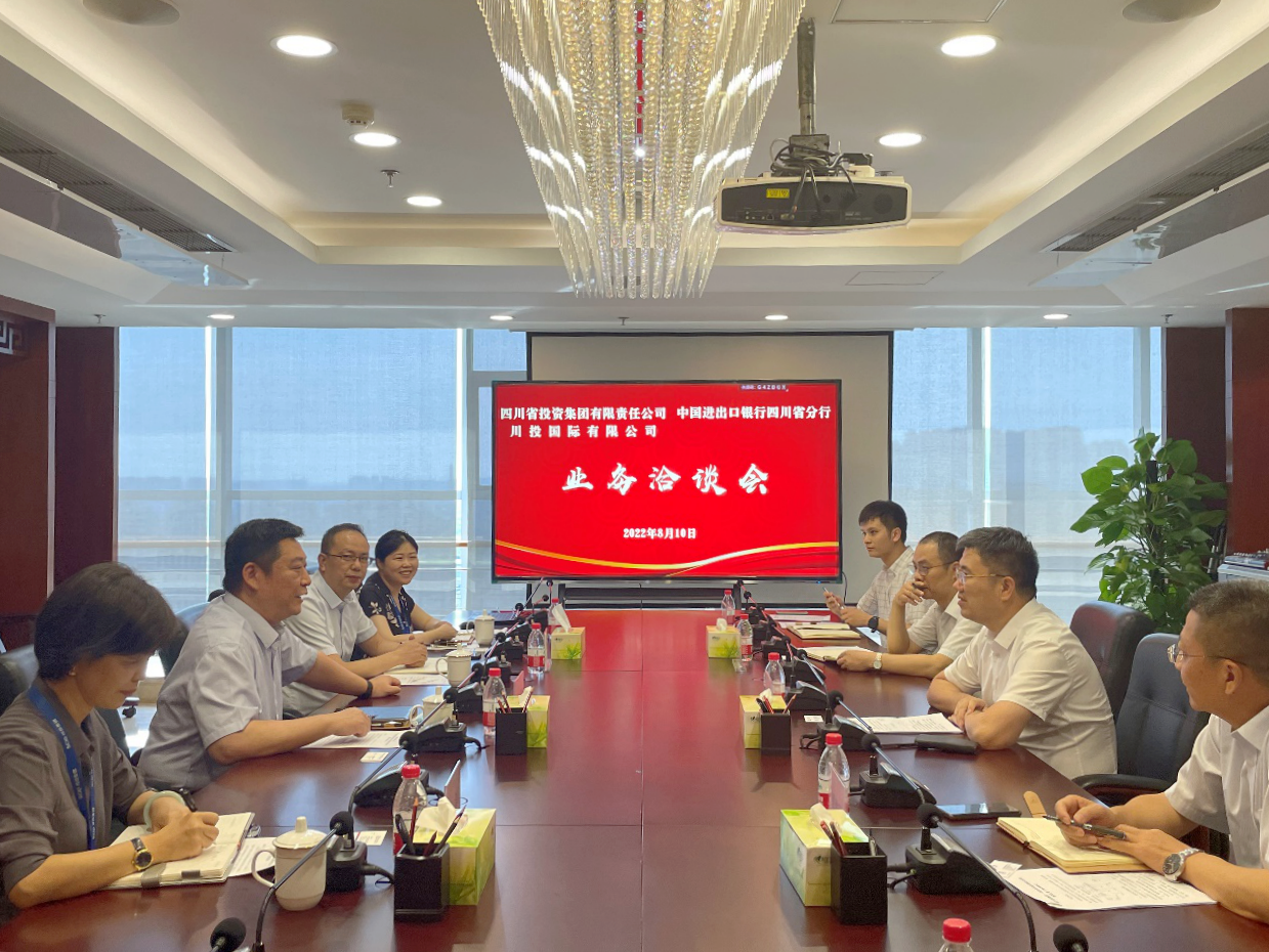 8月10日,集团公司财务总监黄劲率队拜会中国进出口银行四川省分行副行长陈盛荣、周维民一行,就尼泊尔马相迪水电站融资工作开展座谈交流。