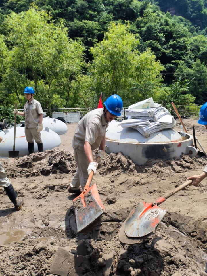 “战疫保电”的同时,田湾河公司还经历了一次抗险救灾考验。8月底,一场大雨裹挟着2万余方泥石流冲毁了田湾河生产现场通往仁宗海电站的道路与主要线路。为确保安全发电,基地所有部门悉数出动,“白 黑”连续奋战抢险自救。泥泞的滑坡体里,党员冲锋在前排查隐患;倾倒的电线杆旁,青年志愿者逐一排查受损情况;被泥水淹没的库房里,党员突击队全力清淤;厂房里、大坝旁,身处交通孤岛的党员职工们沉着冷静坚持工作。