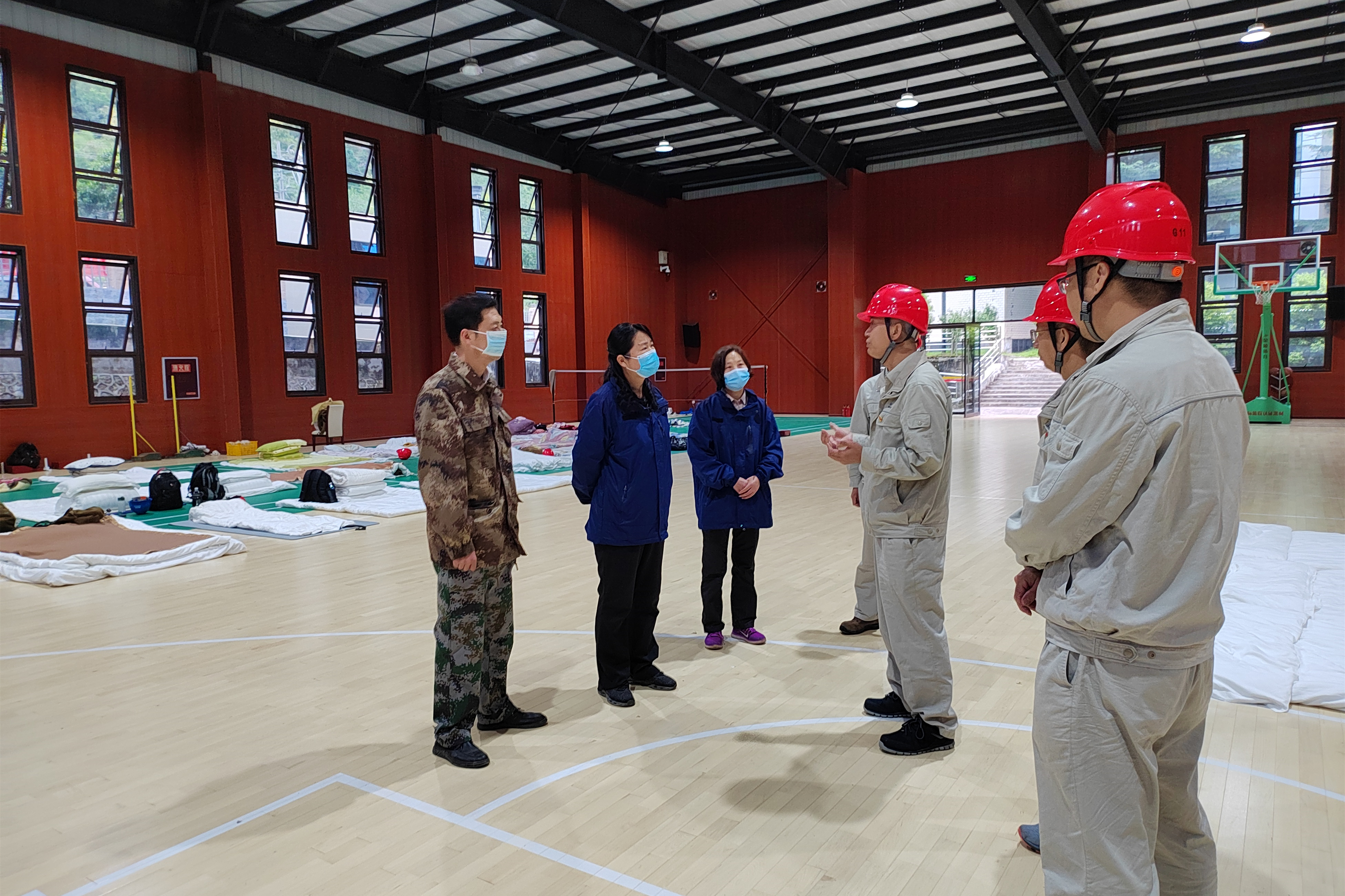 彭映梅一行到现场人员应急安置点体育馆,查看人员应急安置情况,传达党中央、国务院及习近平总书记对泸定“9.5”地震抢险救灾工作的重要指示,转达省委省政府、市委市政府对大家的关心与慰问。随后对公司现场营地受灾情况进行了实地查看,详细了解公司电力生产受损情况及当前抗灾自救工作开展情况。