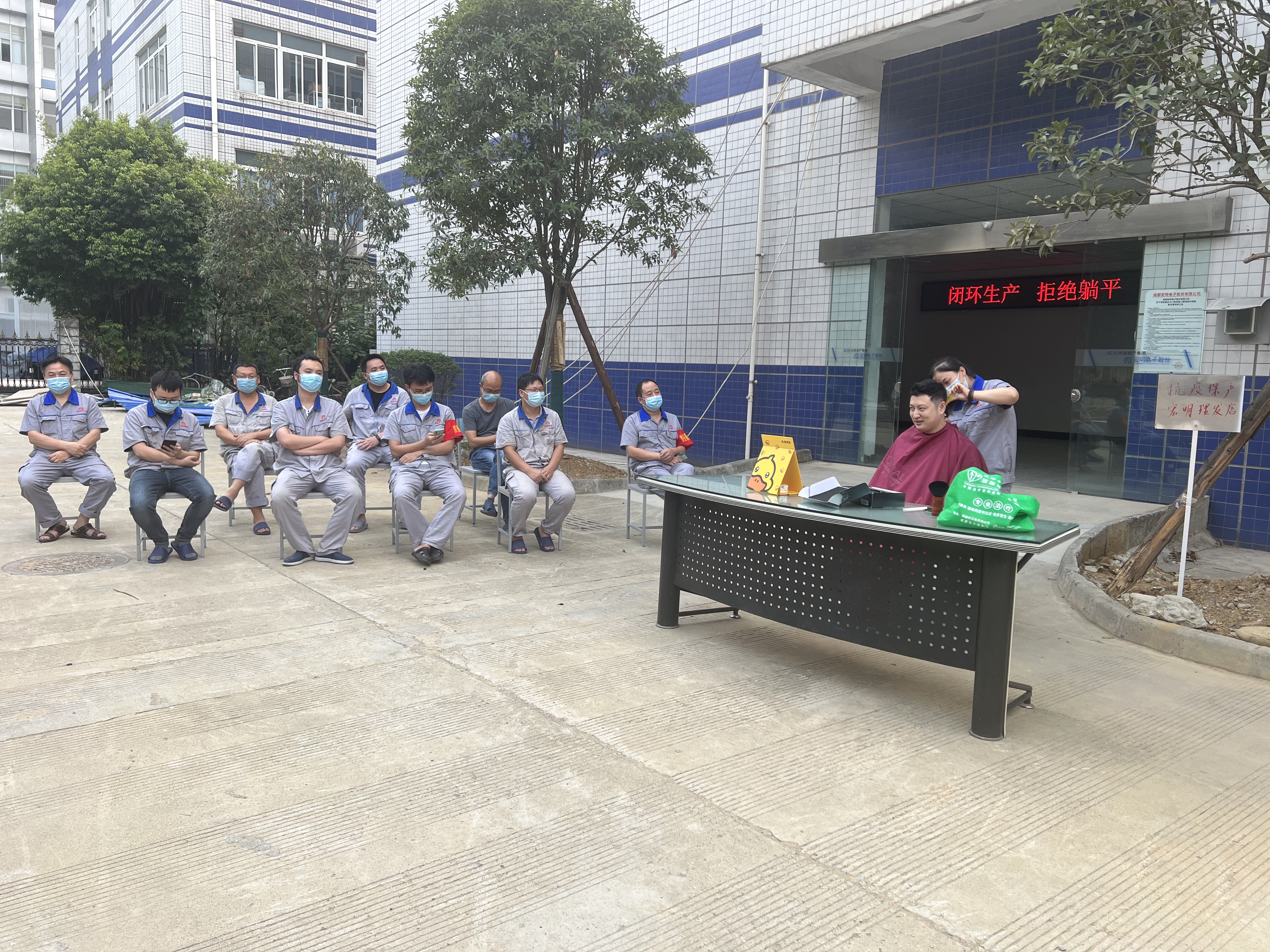 宏明有机电容生产调度员廖雪梅“灵机一动”,决定“开一家”简易理发店。就这样,9月12日晚,宏明电子基地一楼临时的“宏明理发店”开张了。廖雪梅还邀请了有理发经验的卷绕工——叶发翠同志一同帮忙,为在岗男同事们“剪”去烦恼。