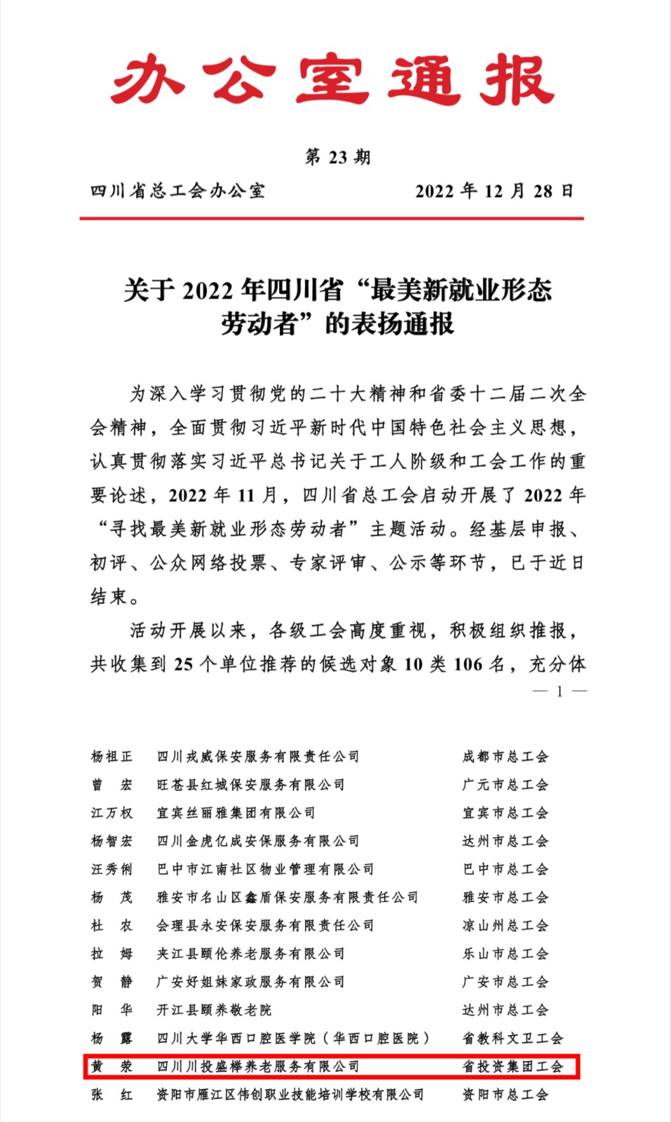 在省“最美新就业形态劳动者”评比活动中,2022年度“省五一劳动奖章”获得者、川投盛榉90后职工黄荥获评省“最美新就业形态劳动者”。