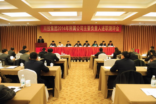 为完善集团公司年度考核工作,全方位评价集团所属企业主要负责同志工作成绩,2015年1月22日,川投集团在川投国际酒店召开了所属企业主要负责人述职测评大会,集团所属16家公司主要负责人公开述职,会议由集团公司党委副书记、纪委书记董建良主持,集团公司班子成员、本部中层副职以上管理人员及集团所属全资、控股企业主要负责人共计50余人参加了会议。