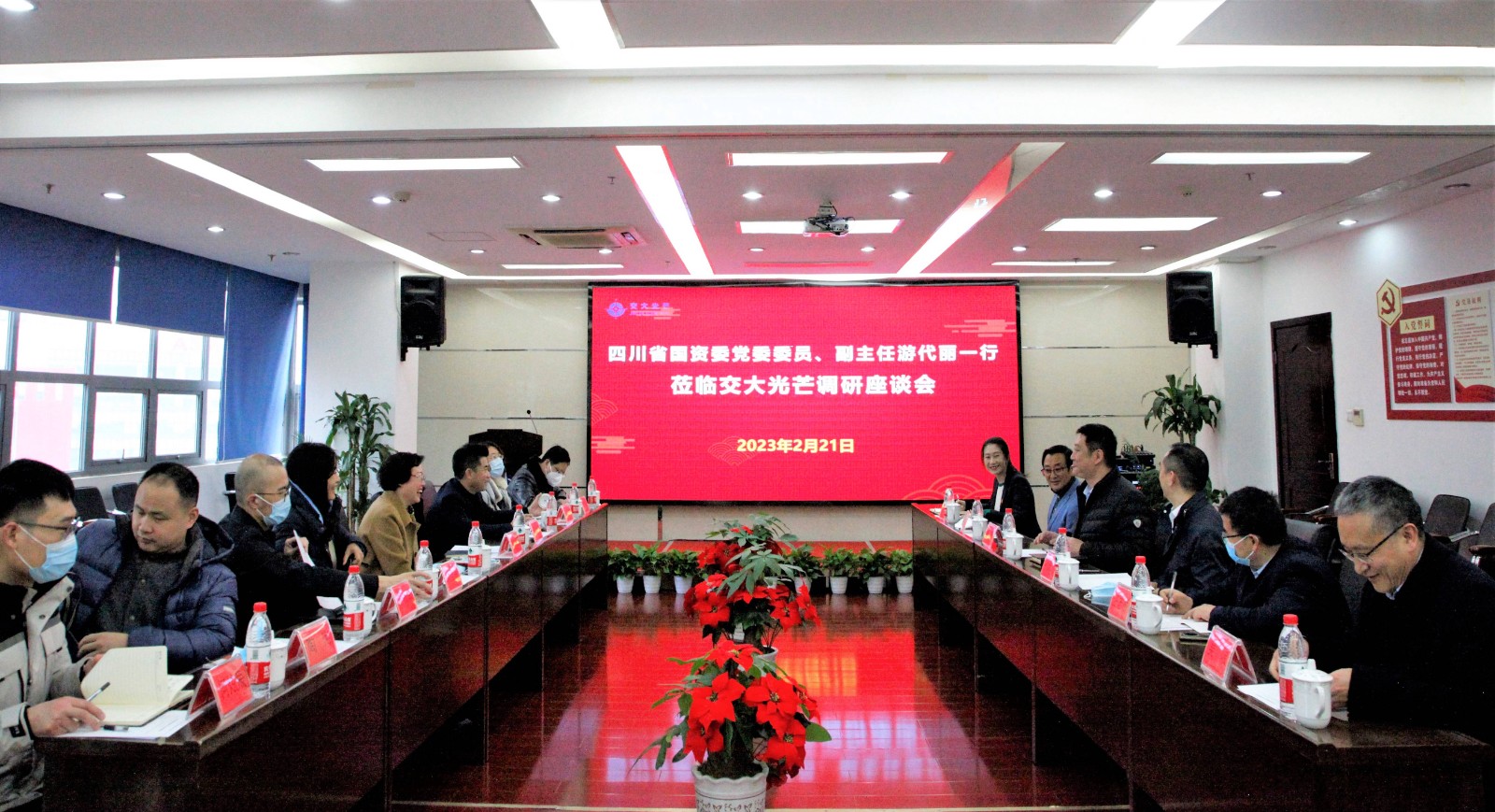 2月21日,省国资委党委委员、副主任游代丽率队赴交大光芒调研指导工作,省国资委巡视员符定平、财务监督与评价处、监督工作处、企业改革处一同参加调研。集团公司财务总监黄劲随同调研。