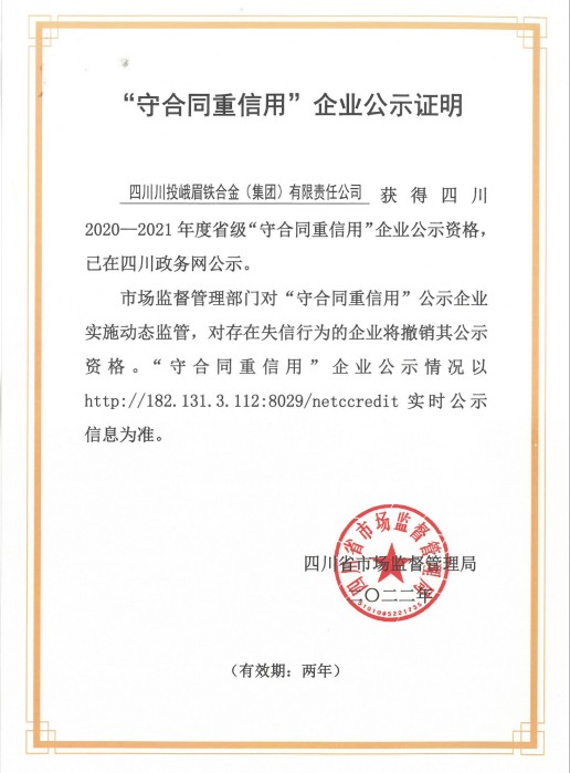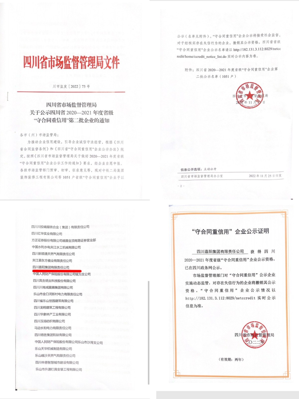 近日,四川2020—2021年度省级“守合同重信用”企业评选结果揭晓。