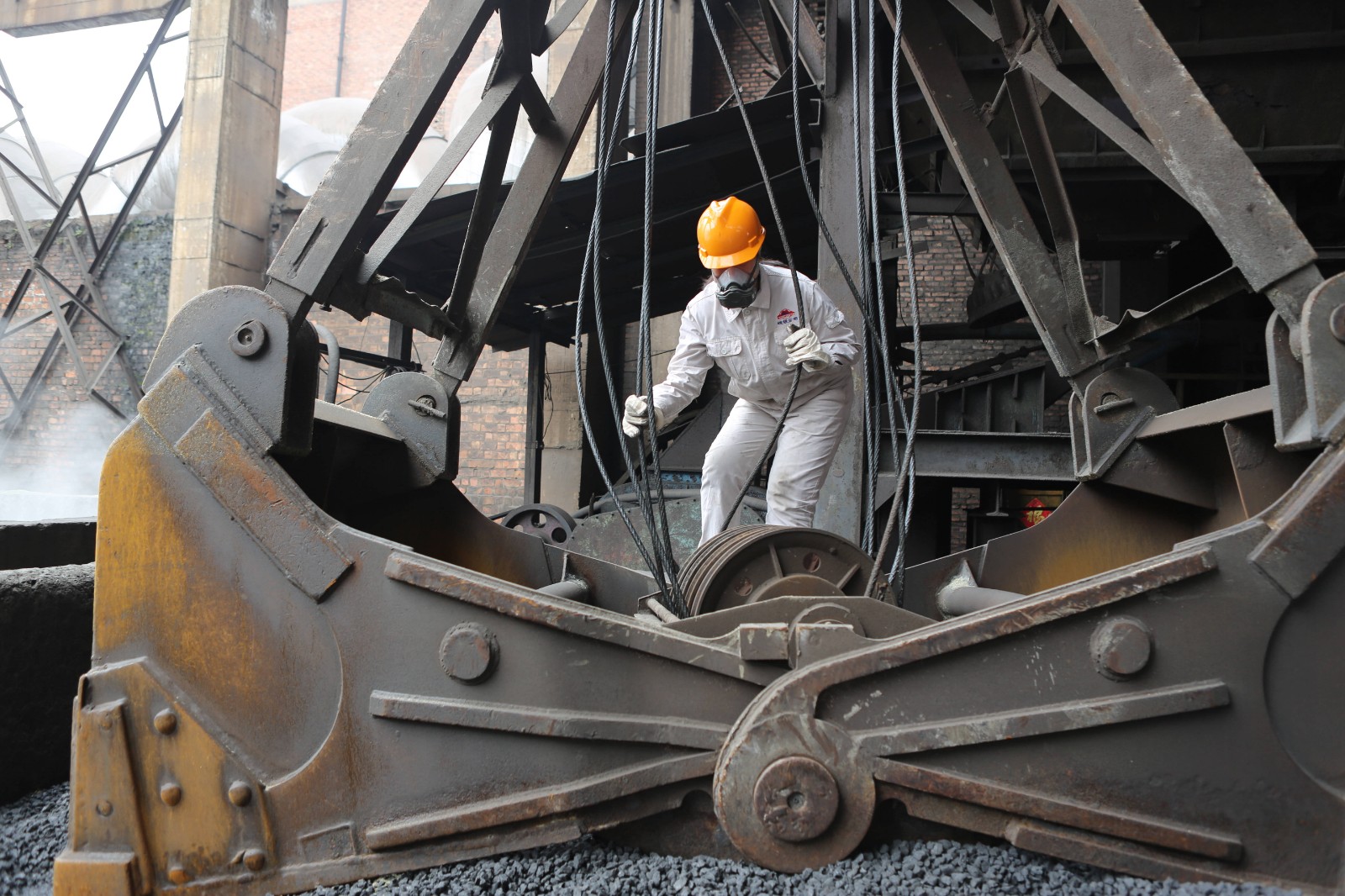 有一次,罗莉所在的四值中班,凌晨0点40分,她像往常一样拿着手电筒巡视捞渣机。当她走到1号炉捞渣机附近时,突然听到“嘎嘎”异响,发现落渣口有一块2米多长的内衬波形板卡在了刮板和护栏之间,受挤压后已严重变形。捞渣机连续运转高效排渣,对机组安全运行很重要。罗莉判断了钢板卡顿方向后,立刻就地临时停止了捞渣机运转,用撬棒使劲儿地敲打波纹板直至松动,让捞渣机恢复正常运行。