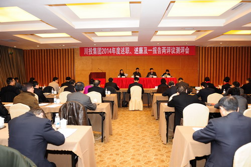 按照省委组织部、省国资委关于做好省国有重要骨干企业2014年度一报告两评议及考核工作的要求,为全面总结,认真分析,2015年2月10日上午,川投集团在川投国际酒店召开了为期半天的2014年度领导班子、中层管理人员述职述廉及一报告两评议测评大会。集团公司副董事长、总经理主持会议,全资、控股企业党政一把手、集团本部部门负责人及员工代表(含退休员工代表)共计约50余人参会,四川省国有企业第二监事会主席郭勇、专职监事任荣、省国资委法规审理处东乐、省国资委领导人员管理处副处长骆筱虹到会指导。总经理代表川投集团向大会做了川投集团2014年干部选拔任用工作报告、党建工作专项报告。集团公司领导相继述职述廉,中层管理人员通过书面方式进行述职。按照要求,大会对集团公司班子成员与中层管理人员进行民主测评。根据党风廉洁责任制考核工作安排,集团班子成员参加了党风廉洁责任制考核理论考试。