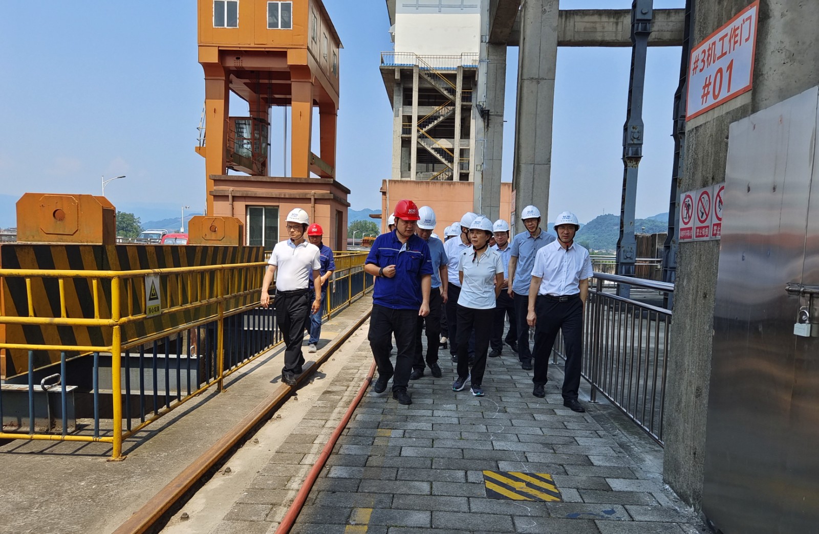 祝春秀一行实地察看大坝前池、泄洪冲砂闸等水工建筑物,听取了电厂防汛减灾、生态流量下泄和漂浮物打捞工作情况汇报,对电厂相关工作给予充分肯定,并根据视察情况提出意见和建议。