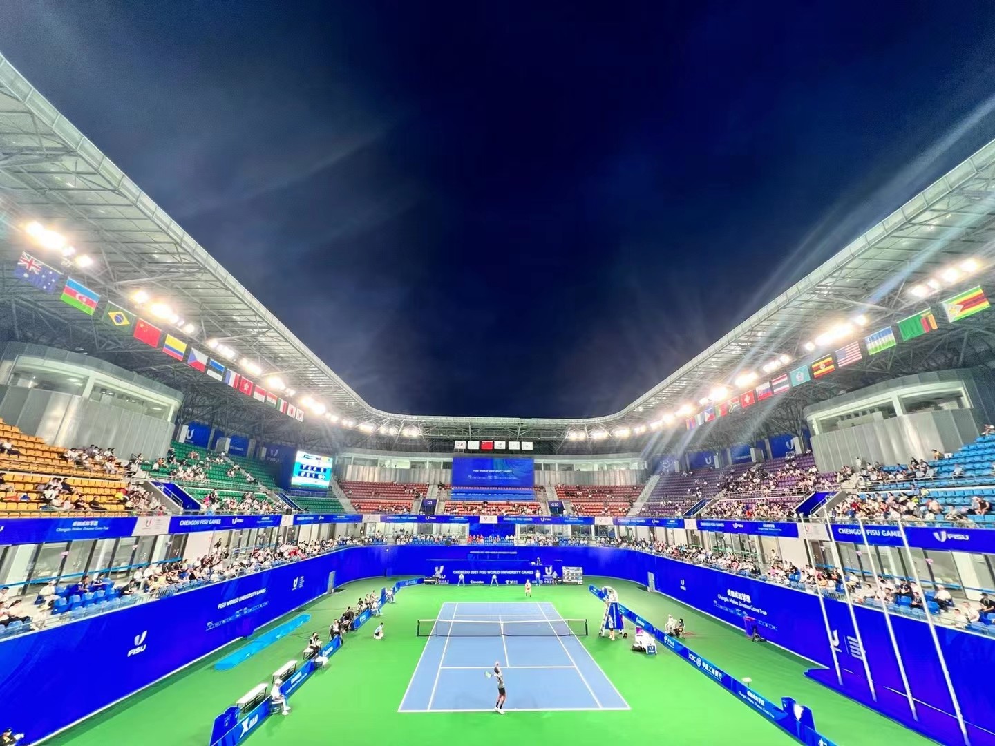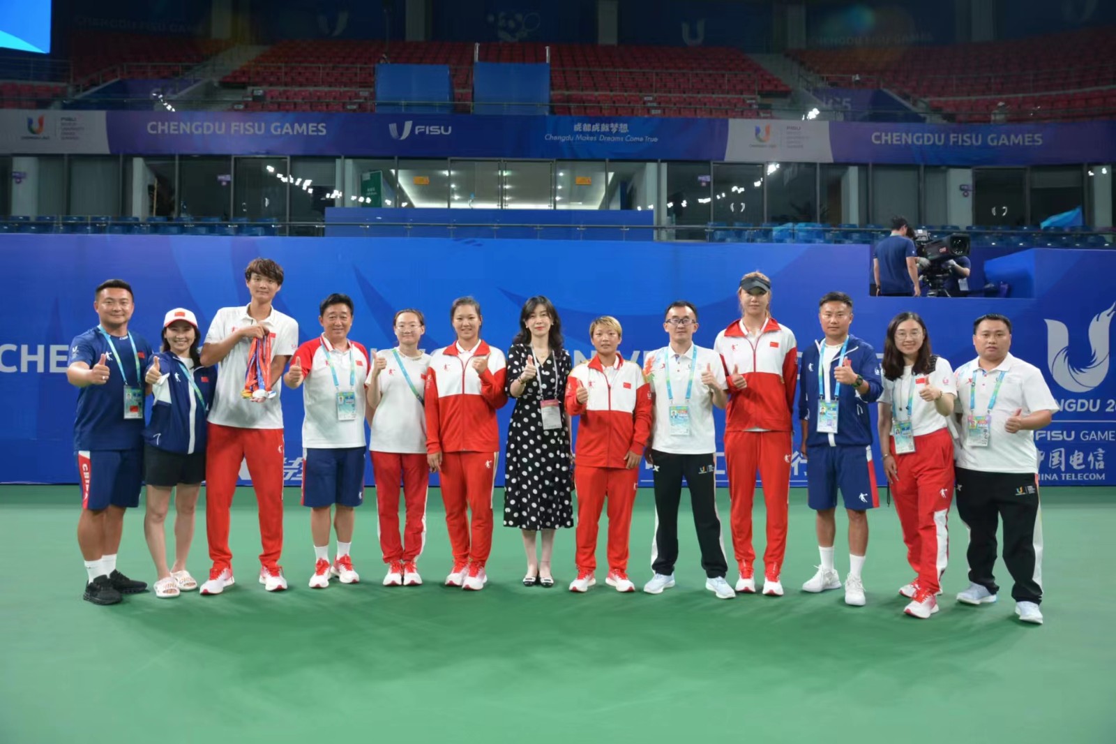 在服务大运会网球国家集训队工作中,川投国网始终坚持国家利益为首,集合公司所有资源,为代表队的训练和比赛提供了优质的保障,助力中国大学生网球代表队获得1金3银的优异成绩。在网球项目赛事组织中,川投国网积极配合成都大运会网球场馆中心工作,自筹资金改造场馆、抽调14名专业赛事工作人员专职进入场馆中心工作,在疫情期间不畏艰难,坚持不懈,迎难而上,向国家和社会交上了一份优秀的川投答卷。本次“一馆双荣”是对川投集团和川投国网服务成都大运会最大的肯定。